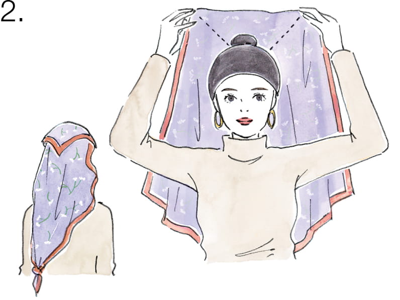 - Wrap the stole around your head and pin in the back where the two sides overlap.