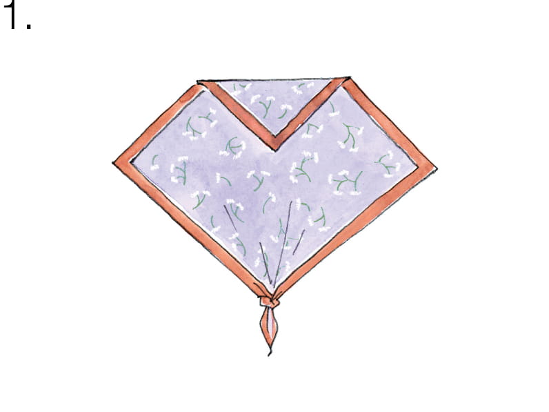 - Fold the top corner of the stole to the center, creating a triangle. Tie the bottom corner into a knot.