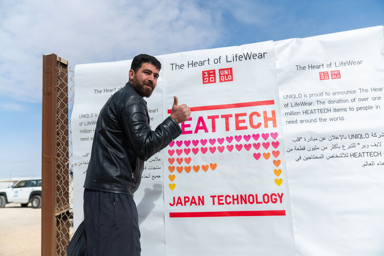 在UNIQLO全球合作夥伴—聯合國難民署(UNHCR)的請求下,2025年2月,UNIQLO向約旦捐贈了53萬件 HEATTECH保暖內衣。位於該國的「札塔里難民營」是中東最大、世界規模最大的難民營之一,約有7萬名難民居住,而整個約旦境內仍有約62萬名敘利亞難民過著避難生活。