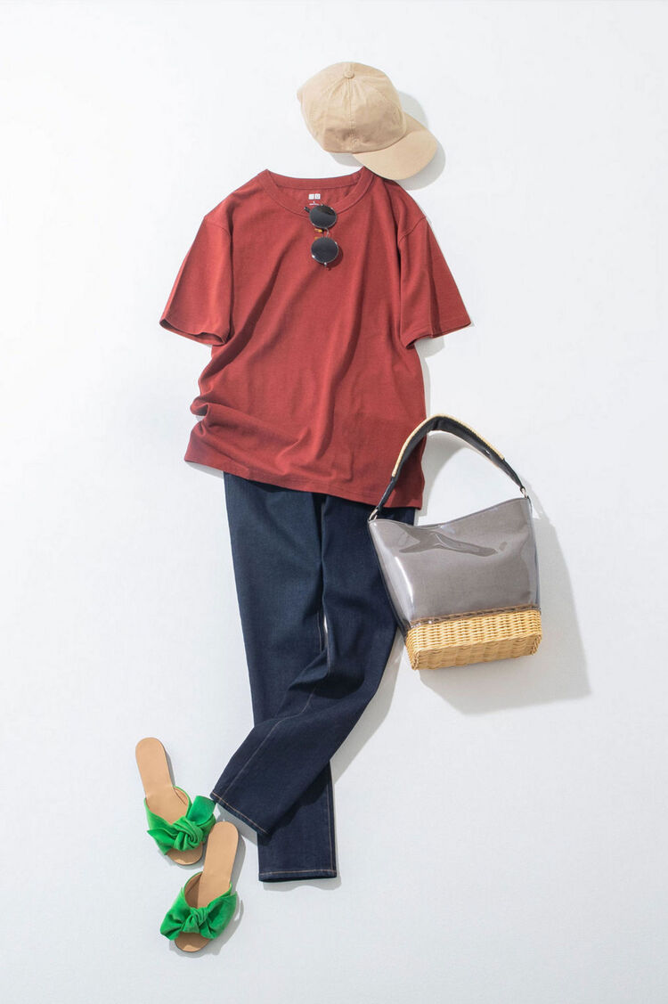 Ciptakan tampilan keseluruhan yang lebih ramping dengan memasangkan atasan yang kaya akan warna terracotta dan jeans dengan warna indigo yang kuat.
