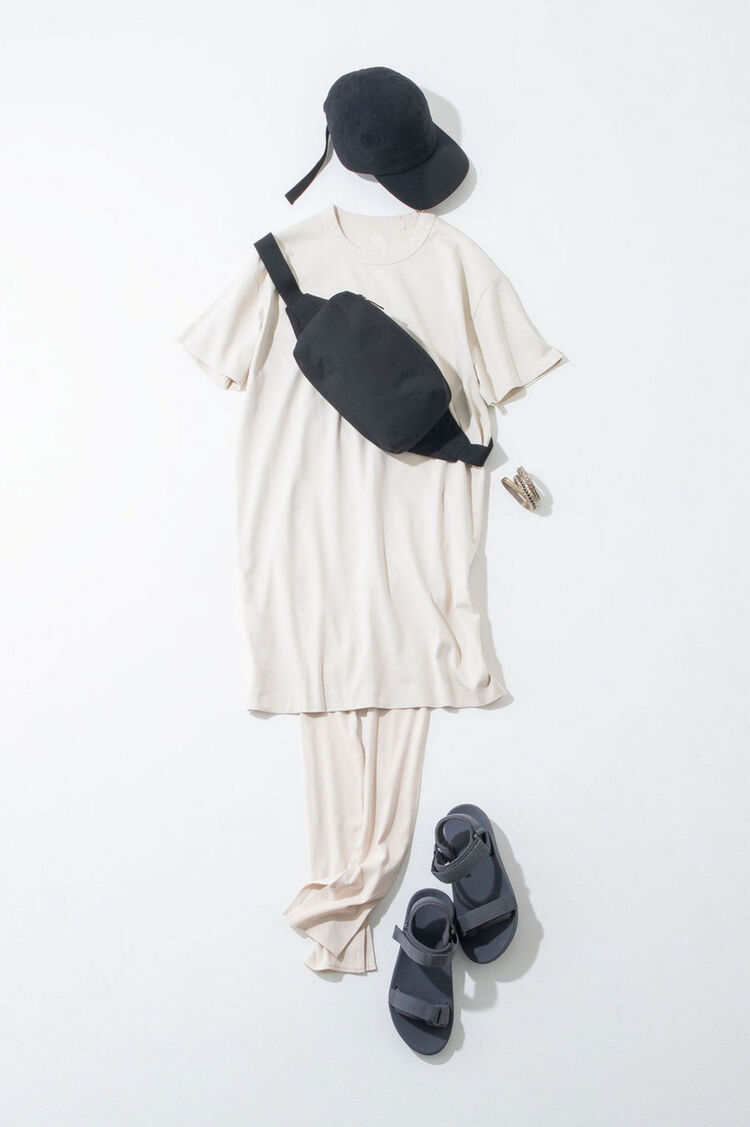 Penggunaan aksesori sporty begitu in di tahun ini. Gunakan aksesori warna hitam untuk mempertegas tampilan stylish kamu dari warna dasar beige.