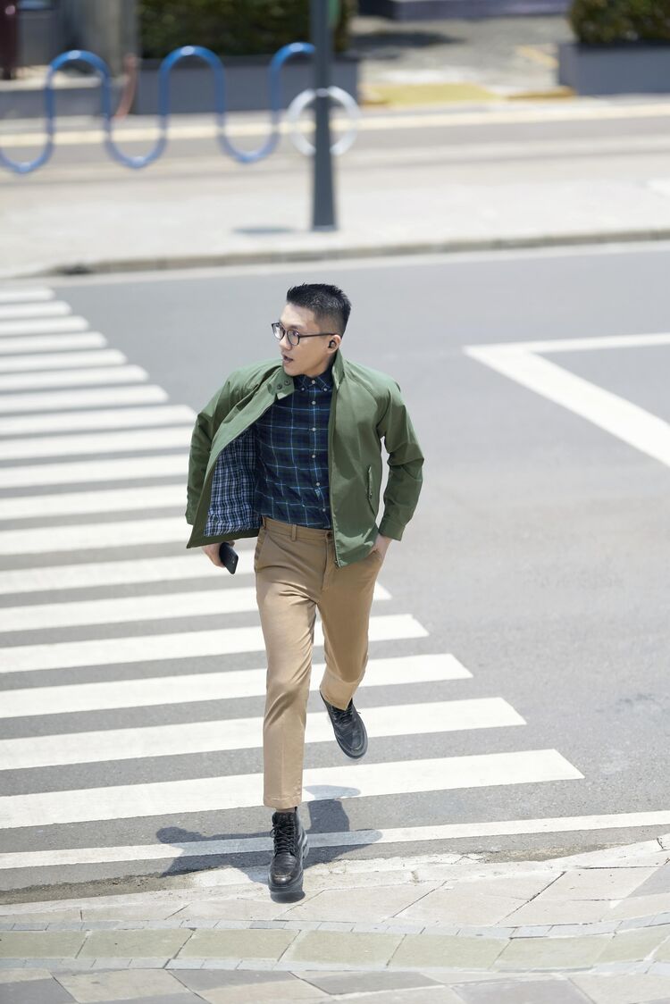 Kevin menjalani jadwal sibuknya dengan mengenakan EZY Ankle Pants dimana materialnya telah dilengkapi teknologi 2 Way Stretch yang ekstra nyaman. Dalam memastikan ia tetap terlihat elegan, Kevin mengenakan atasan bernuansa earthy berupa UV Protection Crew Neck Cardigan berkarakter ringan yang dipasangkan dengan Rayon Blouse berwarna olive.