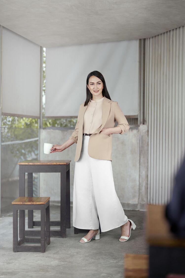 Gaya tailoring pada pakaian kerja banyak difavoritkan wanita profesional karena kelebihannya yang dapat menghadirkan pesona sleek secara instan. Cherry menarasikan tampilan ini lewat Rayon Stand Collar Blouse yang tampak understated namun kuat akan karakter. Blus ini memiliki potongan boxy sehingga terlihat trendi walau digunakan tanpa luaran dan gaya styling untuk occasion lainnya selain kantor.