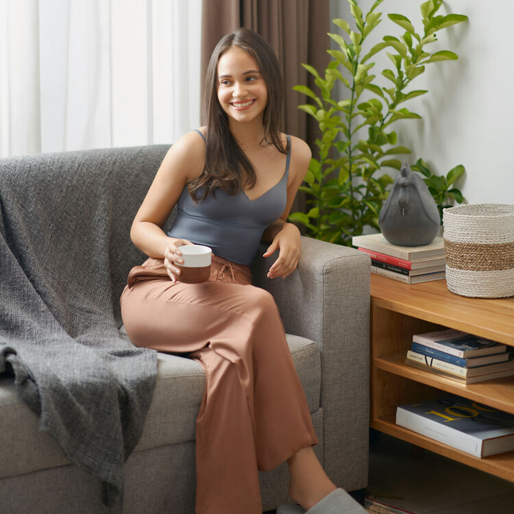 “Walaupun di rumah, biasanya aku tetap meluangkan waktu beberapa menit untuk istirahat di tengah-tengah aktivitasku sepanjang hari. Bisa itu hanya duduk menikmati momen me-time, ataupun dengan menikmati minuman yang aku buat. Menurutku momen me-time semakin terasa sangat lengkap jika didampingi dengan pakaian yang nyaman seperti BRATOP ini. Sensasi seperti tidak menggunakan bra adalah hal yang paling aku suka, karena membuatku sangat nyaman dan relax” ujarnya.