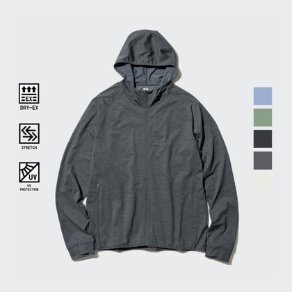Jaket pria berbahan mesh rajutan berkontur yang sejuk ini dilengkapi teknologi UV Protection UPF 50+ .Jaket ini mempunyai desain yang unik, yaitu terdapat lubang ibu jari untuk menutupi punggung tangan dari sinar matahari. Bahannya yang bersifat ultra stretch dengan fitur 'DRY-EX' cepat kering menjadikan hoodie yang dijual seharga Rp 399.000 sangat worth it untuk dimiliki. Adanya zipper pada saku samping menjadikan barang bawaan kamu aman dan tak akan terjatuh.