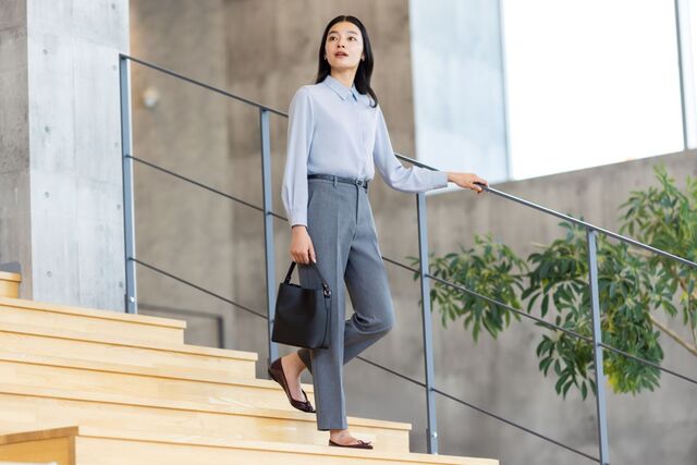Untuk bawahan yang nyaman dikenakan seharian saat bekerja sekaligus mudah dirawat, ada koleksi Smart Pants dengan banyak pilihan untuk pria maupun wanita. Semuanya terbuat dari kain two-way stretch yang lentur dan tidak mudah kusut. Ada juga bagian pinggang elastis yang akan memastikan kamu tidak merasa kesempitan.