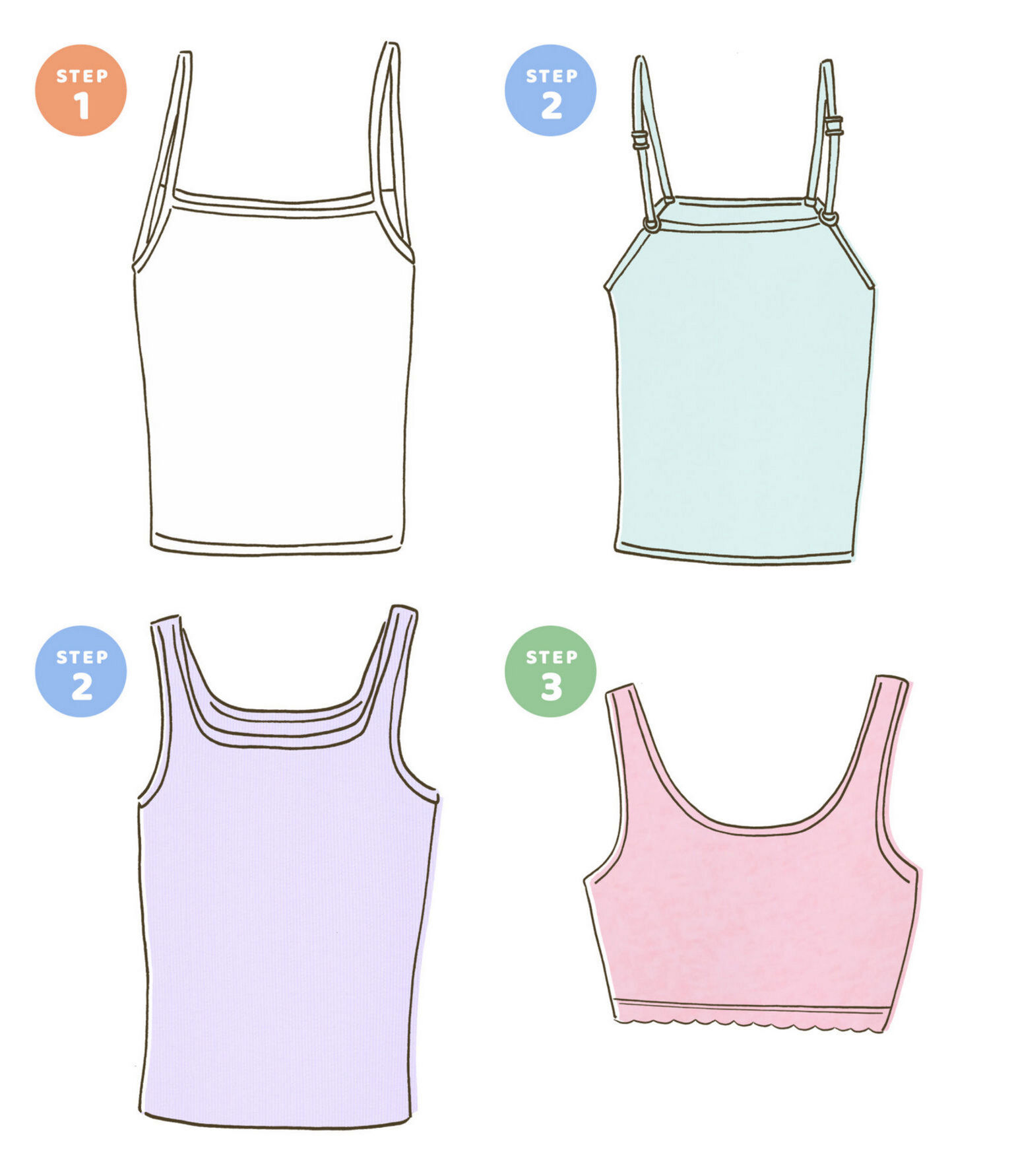 Pertimbangkan tank top Bra Top ini jika putrimu tidak menyukai kamisol. Model ini juga memiliki cup lembut yang menutup payudara dengan halus, dan juga memberikan kenyamanan yang lembut. Bahan cotton-blend pada Bra Top memiliki tampilan lace, sehingga terlihat stylish tanpa terlihat seperti pakaian dalam. Cup yang terpasang di dalam meminimalisir slip dan memudahkan pencuciannya.