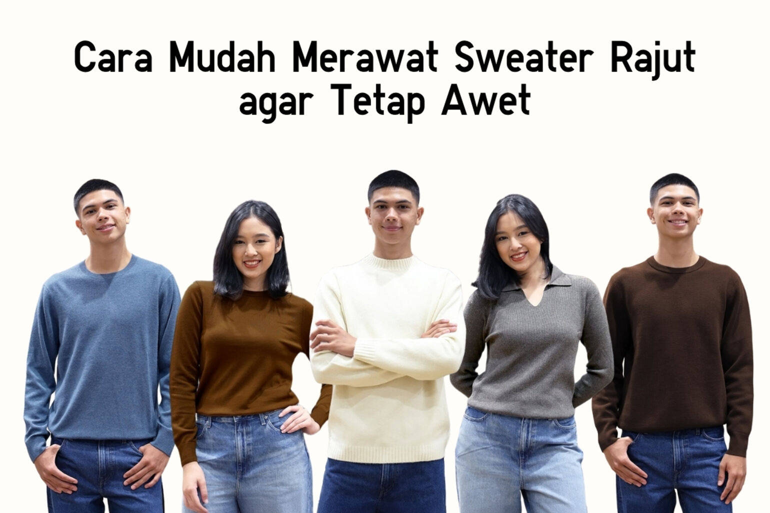 Merawat sweater rajut UNIQLO sebenarnya tidak sesulit yang dibayangkan, asal kamu tahu karakter setiap bahannya. Yang perlu diperhatikan, gunakanlah air dingin, hindari mesin pengering, dan selalu bentuk kembali sweater saat dikeringkan agar bentuk, warna, serta tekstur rajutnya tetap terjaga. Temukan item rajut favoritmu dengan size dan warna yang lengkap di UNIQLO.com atau download UNIQLO app di AppStore/Playstore.