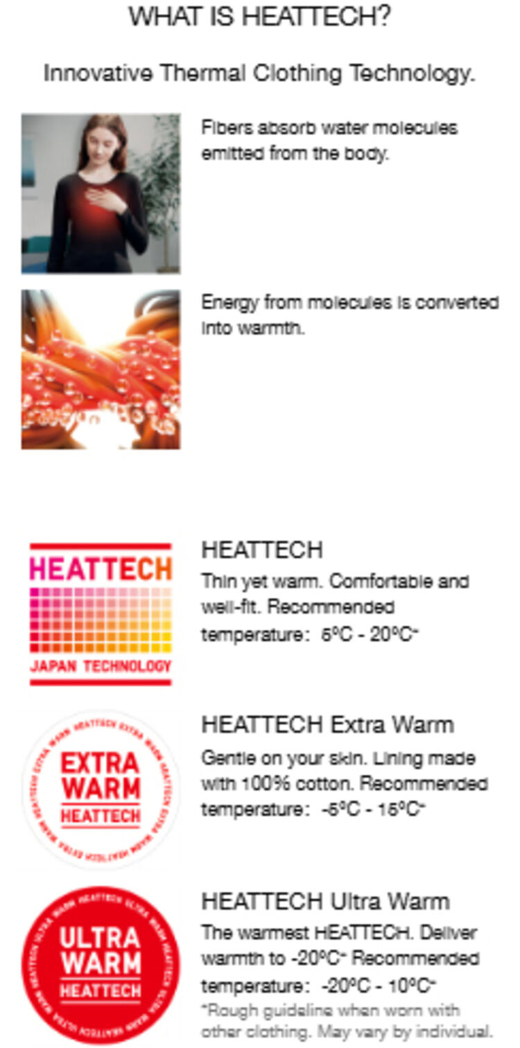 Experience ultimate comfort with our HEATTECH collection, featuring lightweight yet warm clothing powered by Heat of Absorption technology. Crafted with ultra-fine fibers, each piece of clothing offers a smooth feel against the skin. Elevate your wardrobe with the finest collection of long-sleeve thermal wear for women.