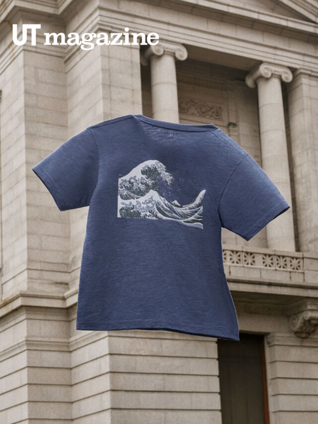 Ukiyo-e captures the atmosphere and cityscapes of its time, portraying people’s daily lives as well as extraordinary moments through the distinctive styles of individual artists. Animals also appear throughout these works—from familiar creatures to exotic beings such as elephants, which were rare in Japan at the time. Sometimes anthropomorphized, sometimes rendered with playful charm, these animals seem to have sparked the artists’ imaginations. Take cats for example. Chosen for the latest UT collection is the battle scene of The War of Cats and Mice by Tsukioka Yoshitoshi. The instinctual enemies that are trapped in the perpetual chase I’m sure were all too familiar for the people of Edo, but the imagination here takes us into the flipped scenario. As the mice overpower the cats with tactics and prowess, the latter is captured rather in a state of panic. The climactic scene is boldly rendered on a T-shirt. Another work, Utagawa Kuniyoshi’s The Fifty-three Cats of the Ailurophile, features joyful caricatures of cats engaged in activities that are at once endearing and mischievous, celebrating the artist’s playful vision and boundless creativity. Each cat is labeled with names of Tokaido stations between Tokyo and Kyoto, performing the act of punning that Kuniyoshi implemented. At times forced, his sense of humor and an obvious love for cats screams out of this piece. Kuniyoshi’s careful composition with ability to let the creature dance with fluidity, is one of the reasons his work is regaining popularity as “people see the resemblance to things like Anime” proclaims Sarah, the curator of Japanese Prints at the Museum. “We actually acquired this piece fairly recently and haven’t had a chance to exhibit it yet. Kuniyoshi was famous for his cat prints, but we did not have many of them – as William Sturgis Bigelow’s collection makes up around sixty percent of the entire Ukiyo-e collection at the MFA Boston, my theory is that perhaps Bigelow preferred dogs more than cats?