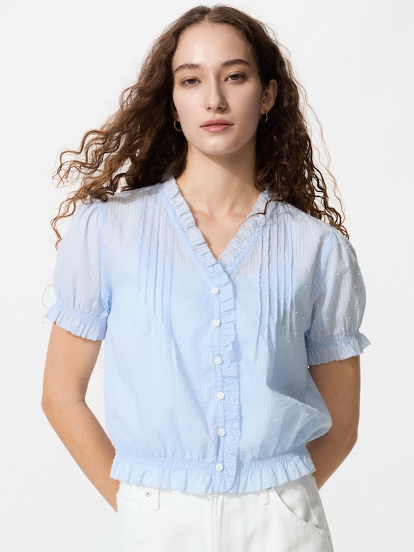 Cotton Dobby V Neck Blouse