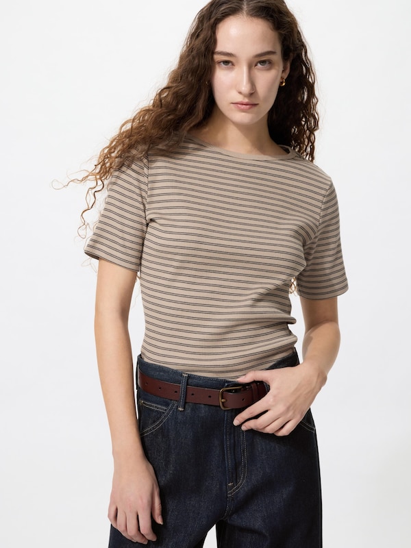 Ribbed Boat Neck T-Shirt