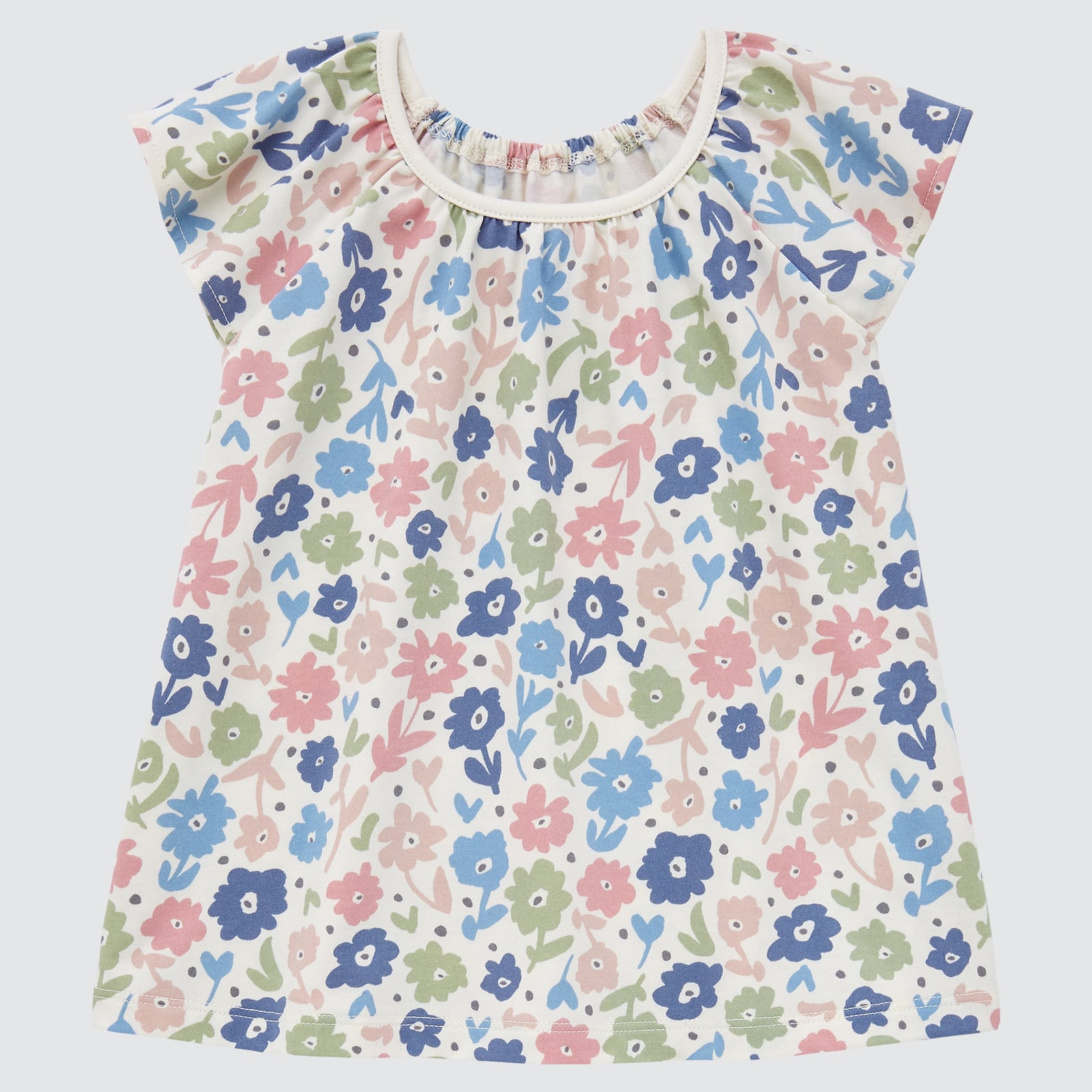 A cute T-shirt with an eye-catching colour block design. Designed for easy dressing, it’s perfect for everyday outfit changes.