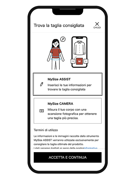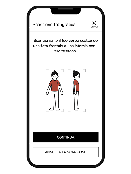 MySize ASSIST ora prende le tue misure direttamente dalla fotocamera dello smartphone, per suggerirti la taglia migliore in modo ancora più semplice ed accurato.
