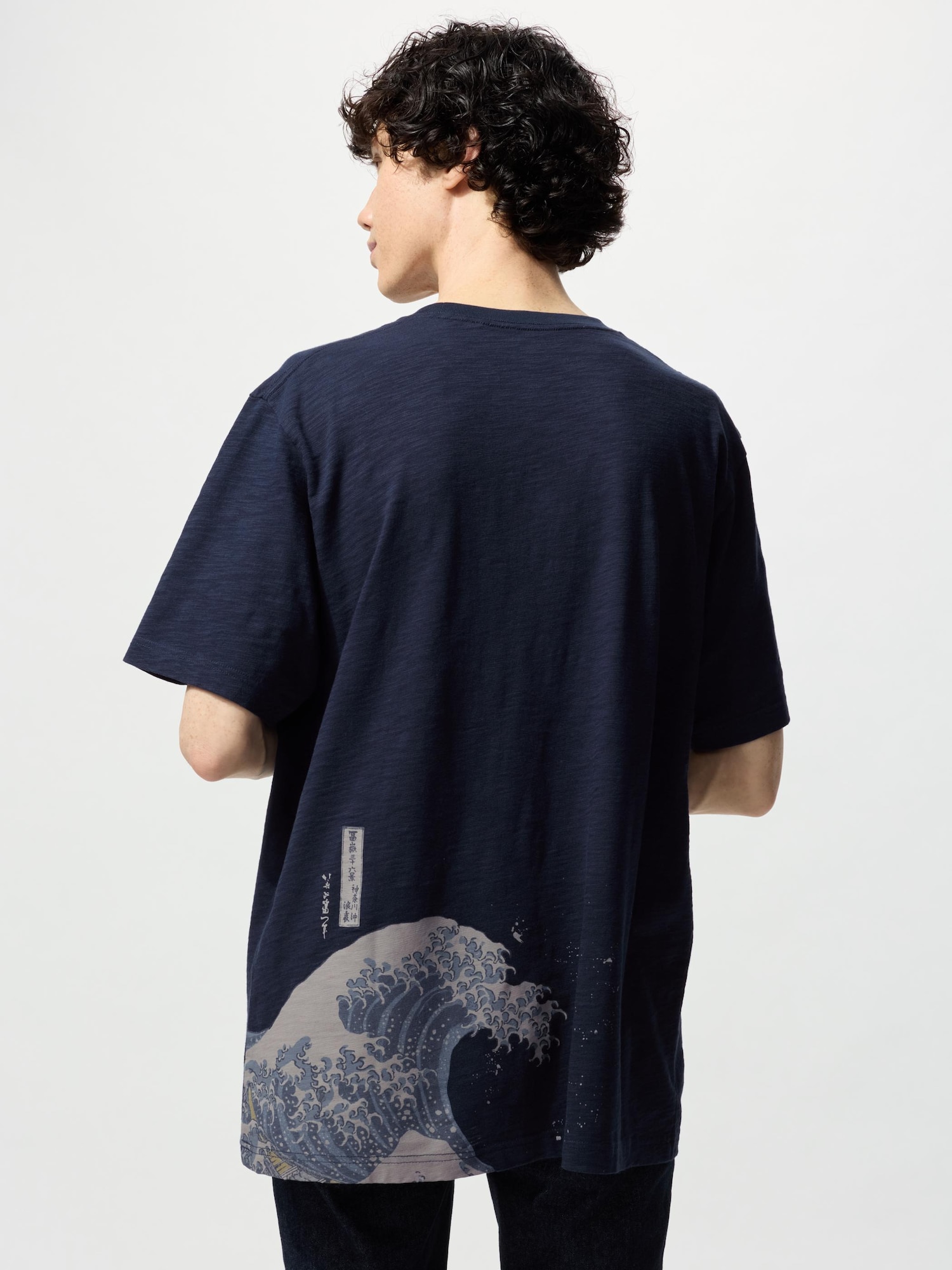 今回はゆったり目に着たくて。 よく着ているエアリズムコットンオーバーサイズTシャツ5分袖XLと比べてみると襟ぐりがやや詰まっているのと袖が短いくらいの違いで身幅や着丈はほぼ違わなかった。 生地もプリント部分は厚く感じるが夏に着るのにちょうど良い薄さ。 胸ポケットの富士山とバックの大波デザインが渋くてカッコいい。 基本的に柄ものに苦手意識があったがルーブル美術館・和物シリーズからUTを購入し始めた。この有名な絵も気追わず日常に取り入れられるのは嬉しい。 大人も手に取りやすいUT、これからも積極的にチェックしたい。