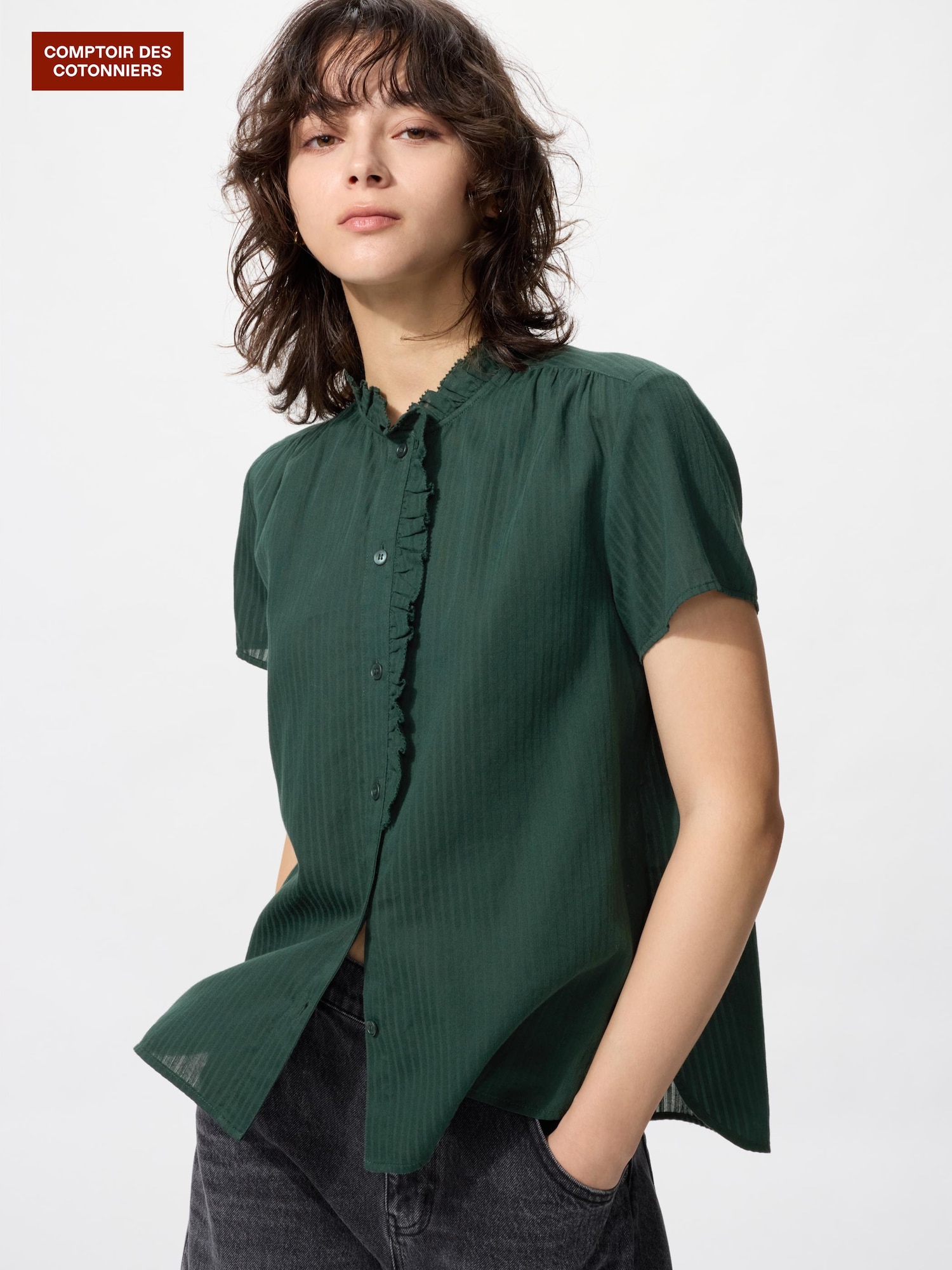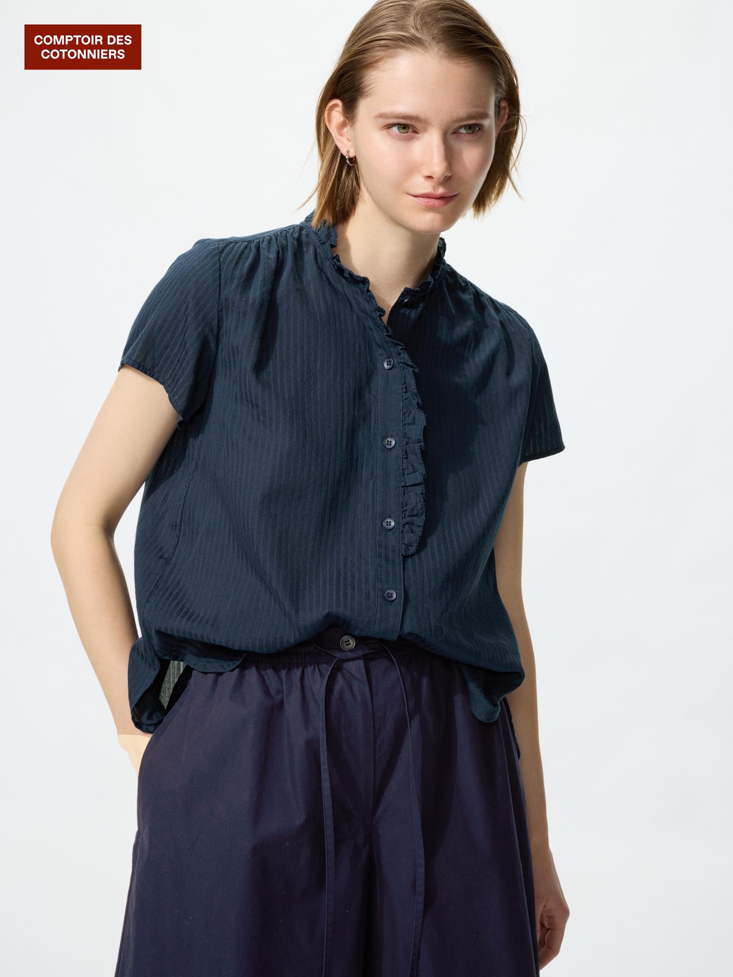 ブルーを購入しました。発色がきれいで、顔まわりがパッと明るく見えるお気に入りカラーです。サテンロングスカートに合わせたくて購入しましたが、これが大正解。コンパクトなシルエットとキャップスリーブのおかげで、スカートの落ち感とバランスがよく、すっきりきれいめにまとまります。肩に少しかかるデザインで二の腕もさりげなくカバーしてくれるのが嬉しいポイント。生地もさらっとしていて着心地がよく、暑い日でも快適に着られます。シンプルだけど女性らしさが出るので、きれいめコーデにもカジュアルにも使いやすく、色違いも検討中です。