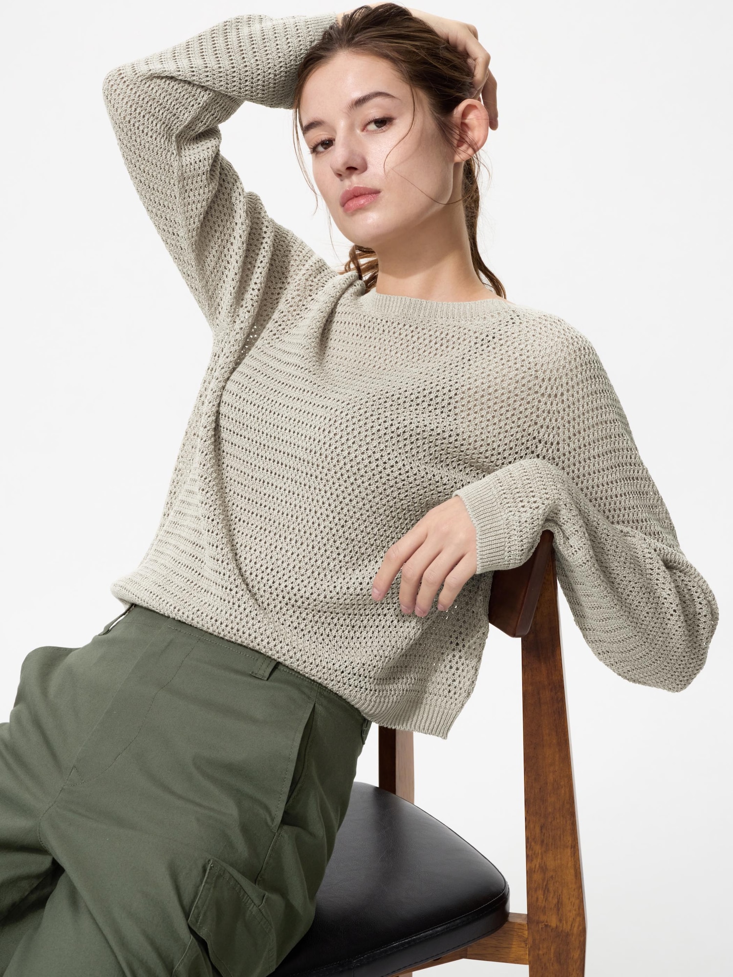 クルーネックの編み編みセーターで、一目惚れしました。メッシュの大きさ、デザイン、ゆったりと着れるサイズ感とバランスがとれてて最高です。今の時期からは下に長袖を着て、春夏は半袖を着ても可愛いと思います!袖が若干長い気がしますが、袖まくりをしてカジュアルに着ても良いと思います!大きめのサイズ感でゆったり着た方が可愛いと思いました。