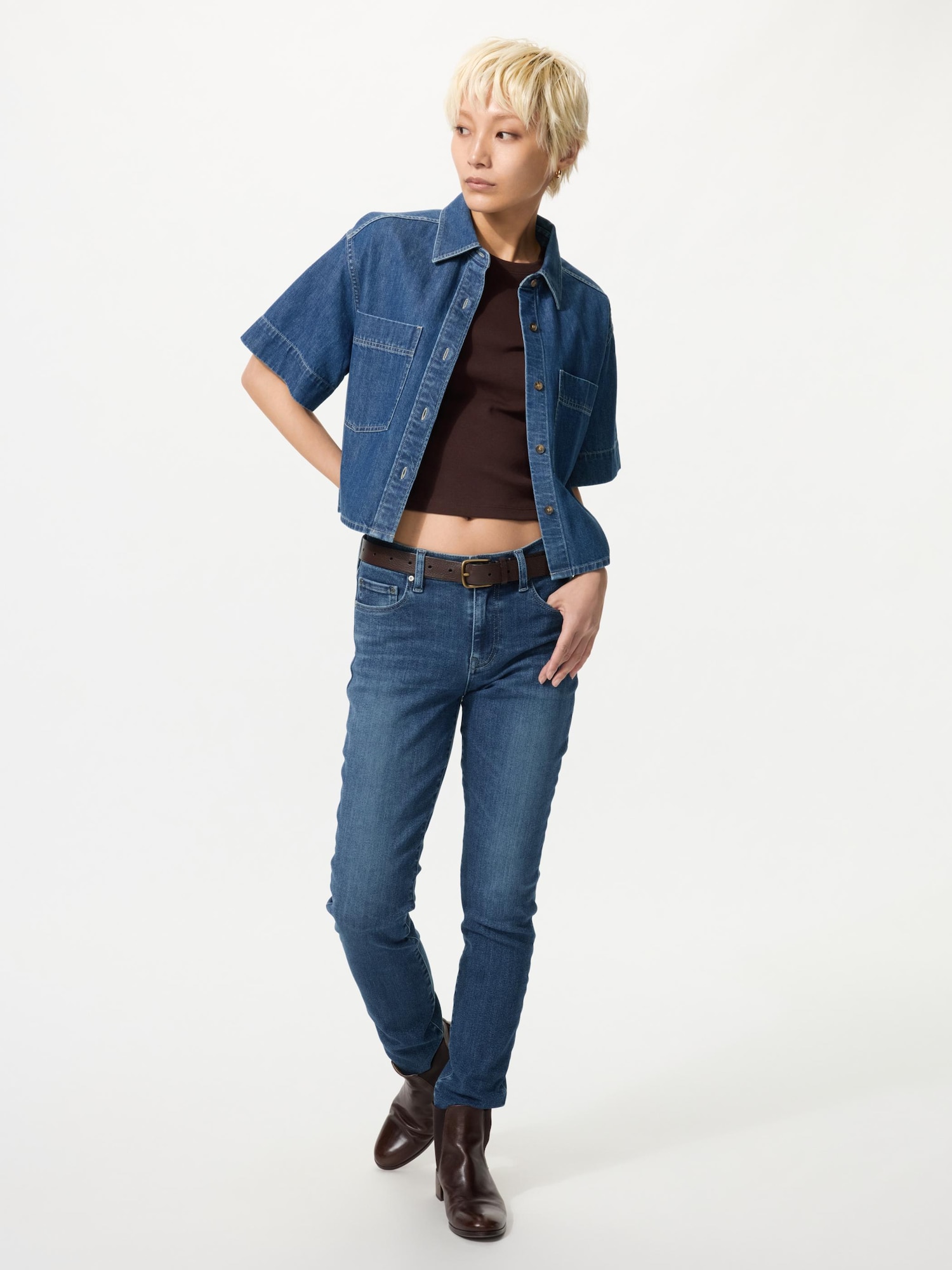 独特の臭いがあり、履く前に3回洗濯して、ようやく着られるくらいにマシになりました。サイズはSで、股下は72cmに直してもらっています。むかしのもでるよりゆったりした作りでしょうか、ヒップあたりが緩めです。履き心地は良いので、リラックスしたい日に履いています。ユニクロのパンツは年々簡素化されて、デザインステッチやポケットが無くなっていく傾向にありますが、デニムレギンスは現状を維持してほしいです。色は、ブルー系だけでなくブラックやグレージーンズ系も出して欲しいです。
