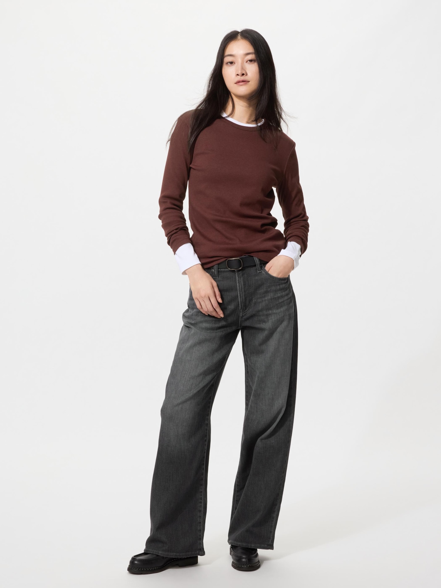 EZYワイドストレートジーンズ/丈長め