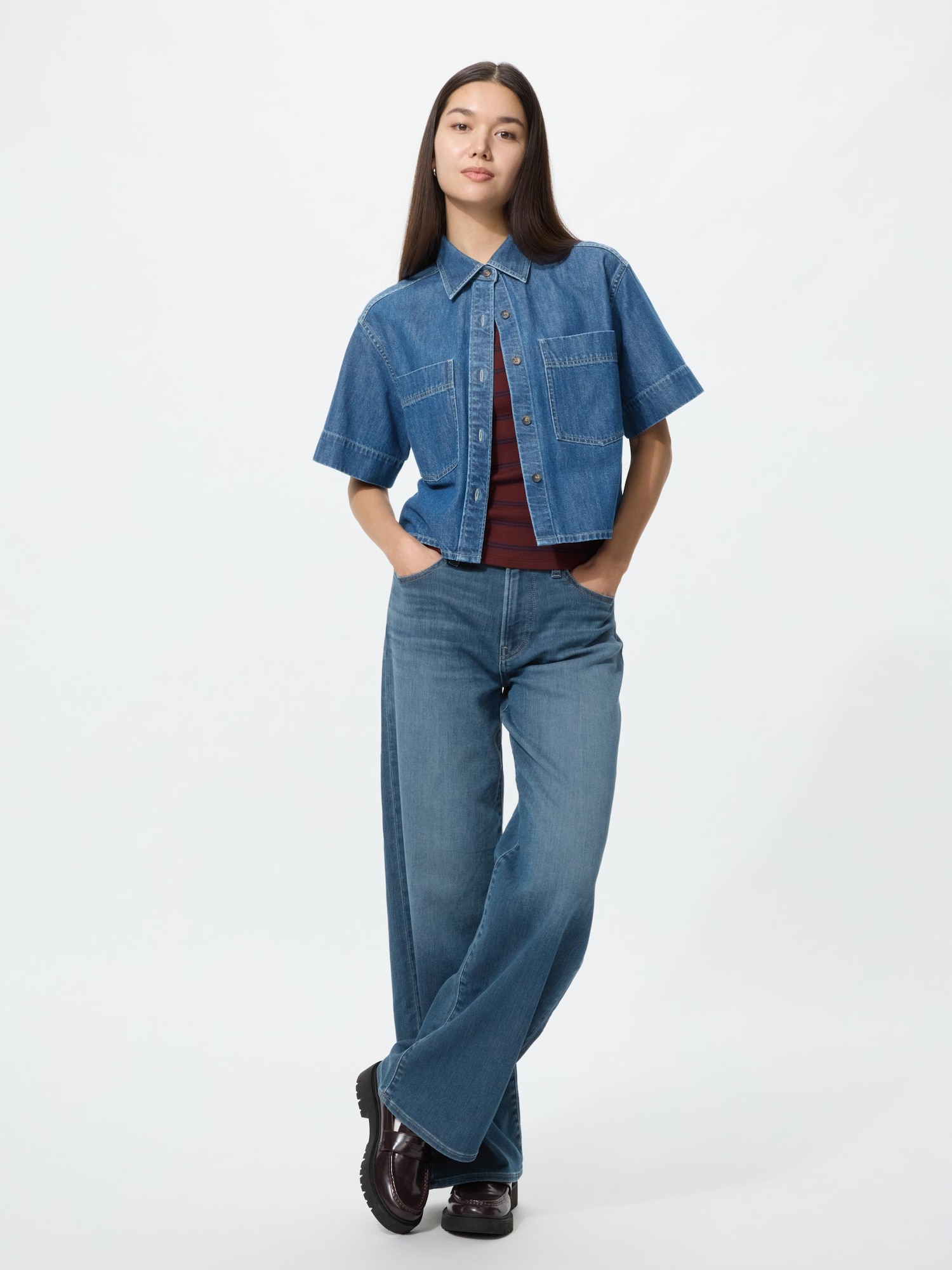 ¥4,990ストレートジーンズ購入しましたが、やはり丈が短めでしたので、オンラインで同じサイズの同じカラー同じデニムをオーダーしました長めでイイ感じになりました丈長めは、オンラインでしか購入できませんがやはり、普通サイズは短いので、丈長めは有難いです