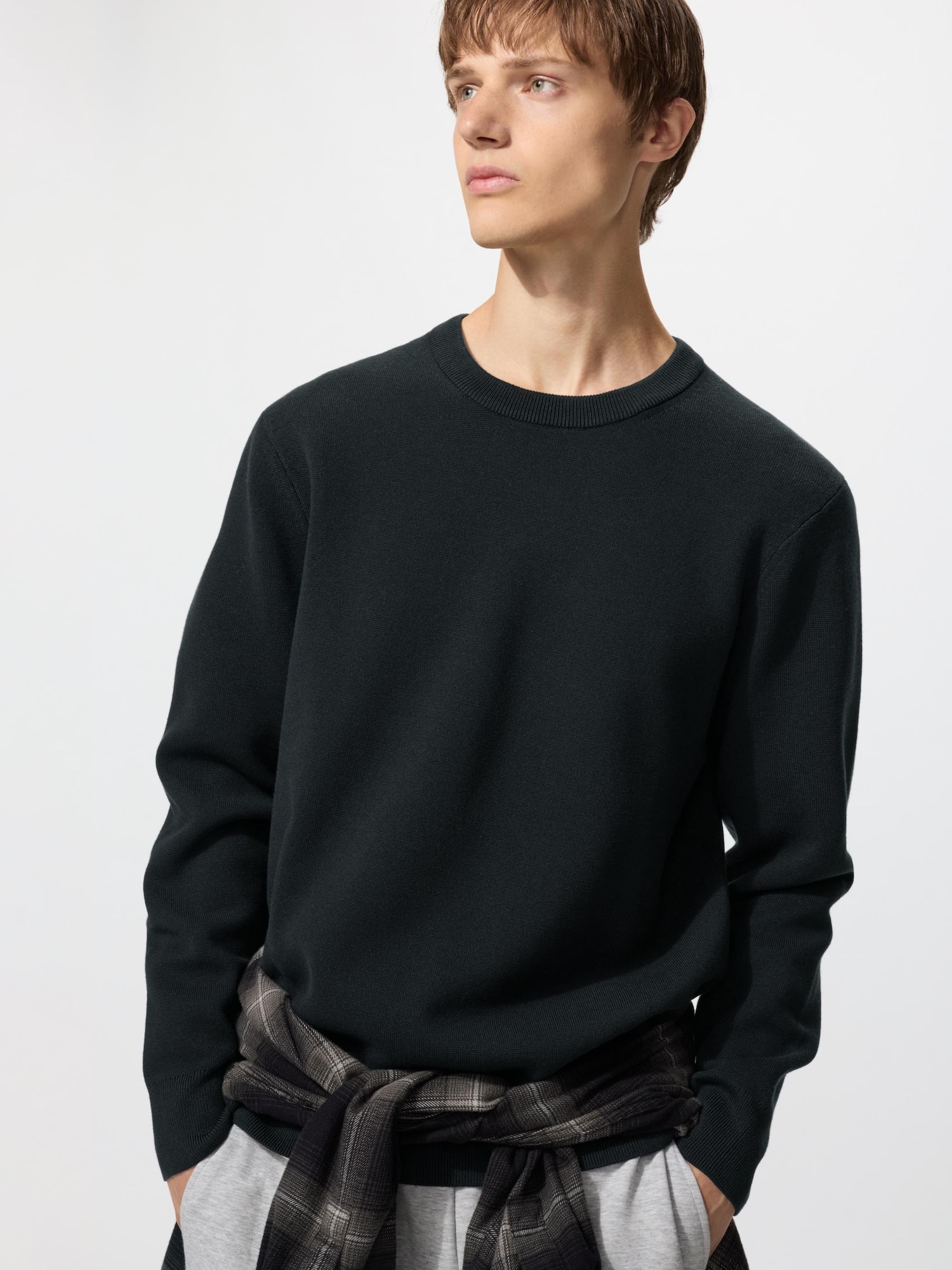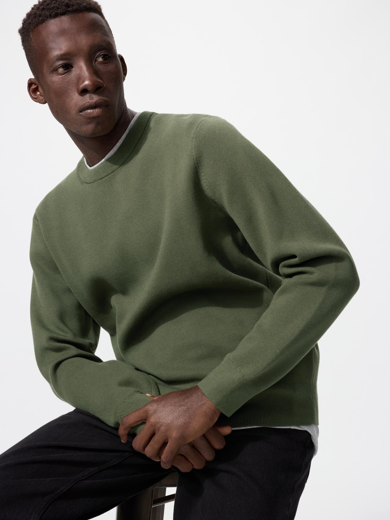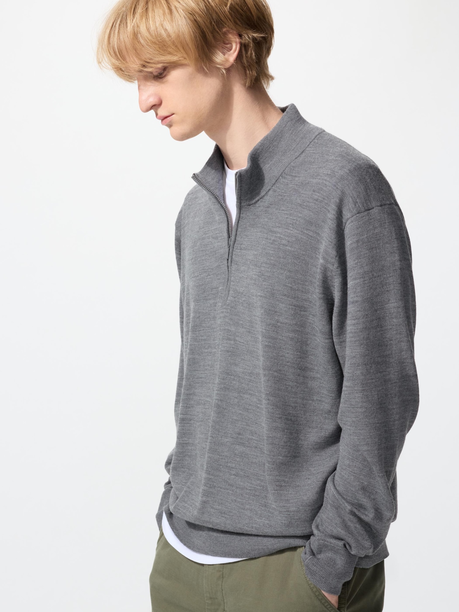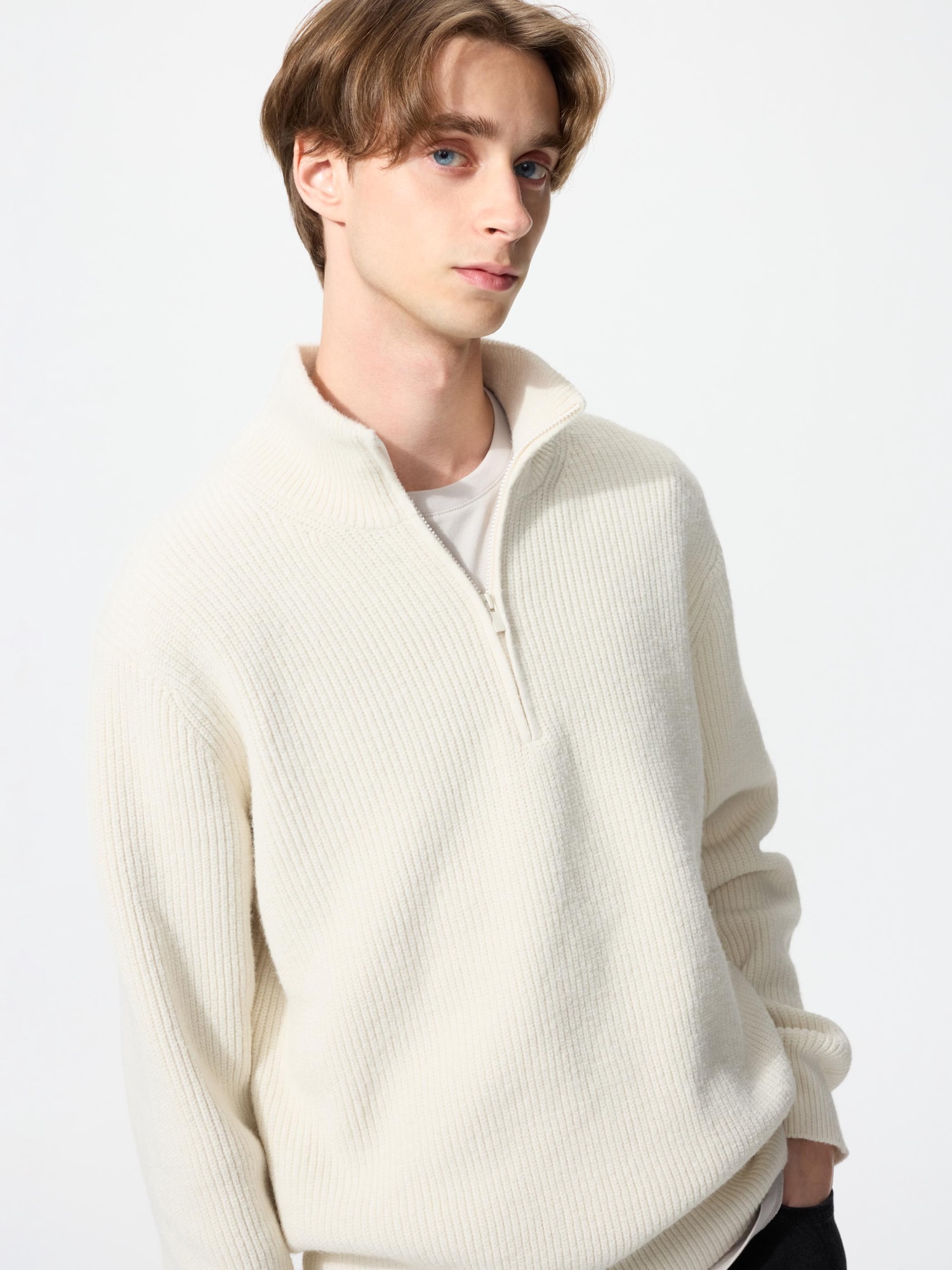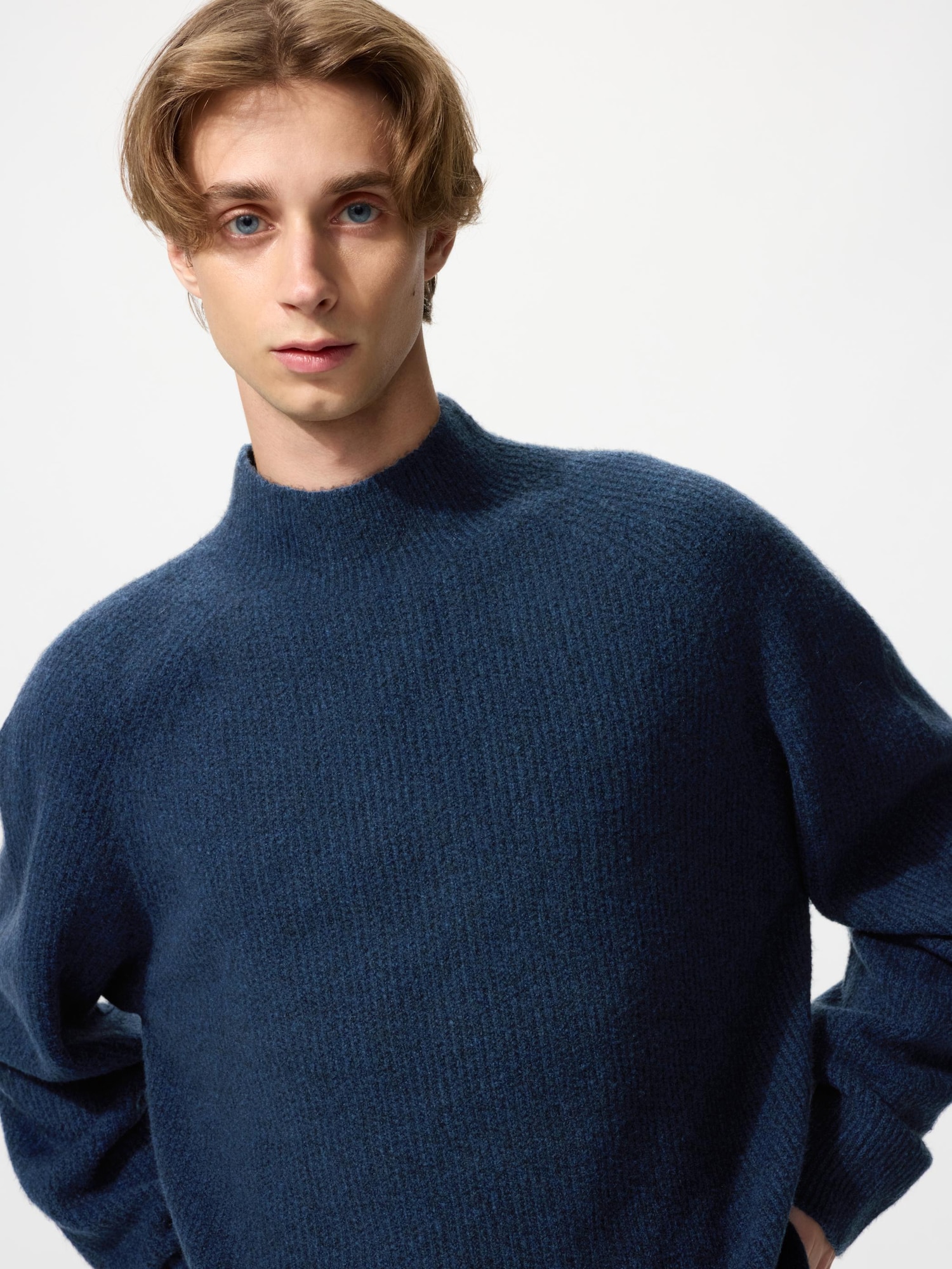 最初はネックの高さが気になって、年配者の自分にはハードルが高いと思っていました。試着して、たしかにネックは高いが、それほど気にしなくても大丈夫でした。生地感は去年のU秋冬モックネックセーターより高級感が半端なくあり、高みえします。試着して首が気にならなければ、即購入して間違えないニットです。