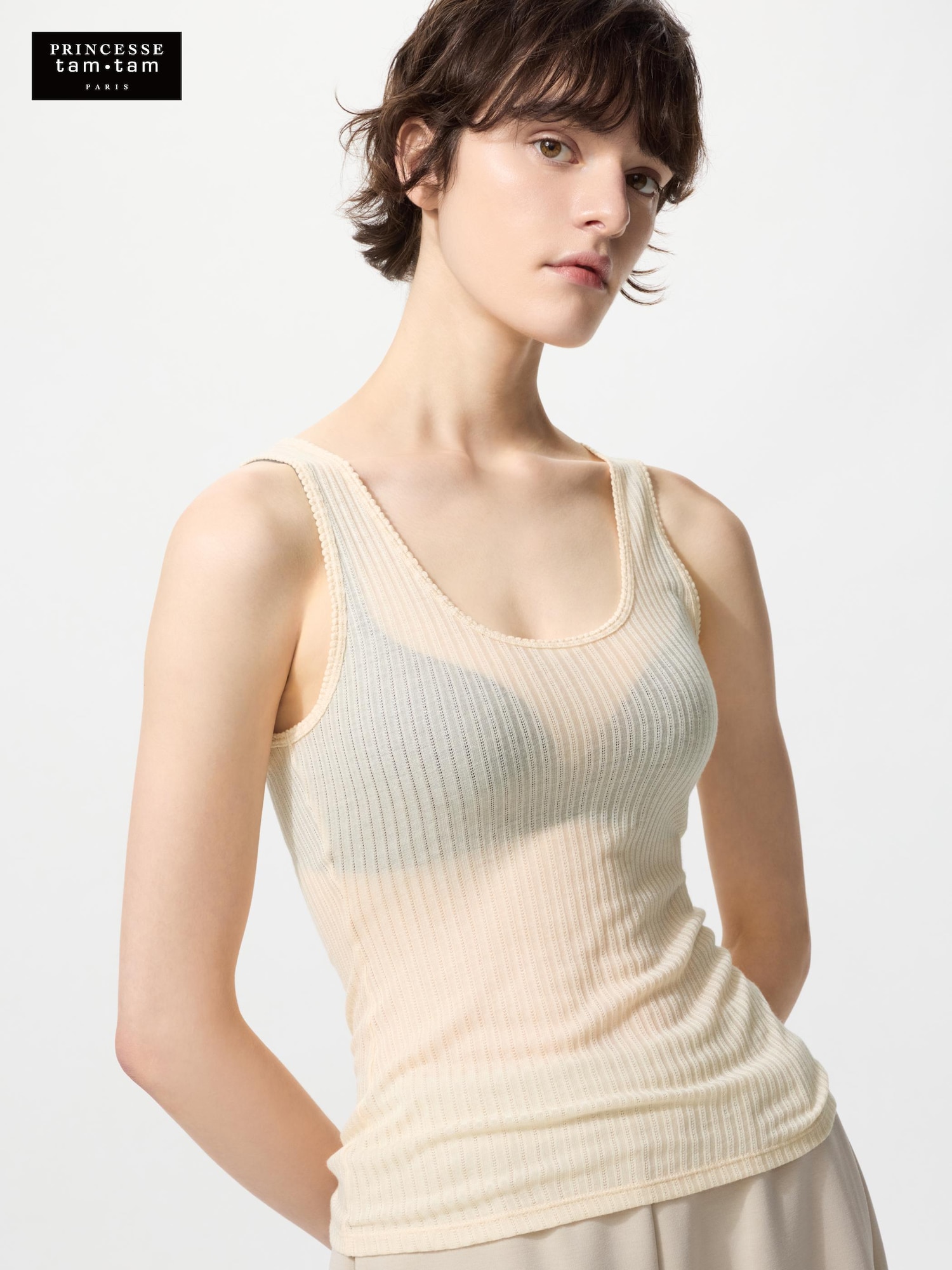タンクトップよりも紐は細目で、とっても使いやすいです。夏場、これ一択。以前はキャミを使っていましたが、昨年からこのキャミ一択。ずっと使いたいです。春から秋にかけてとても重宝します。ブラキャミは胸が泳いでしまうので、ブラとキャミは別が好きです。ヒートテックも、このタイプが欲しいです。