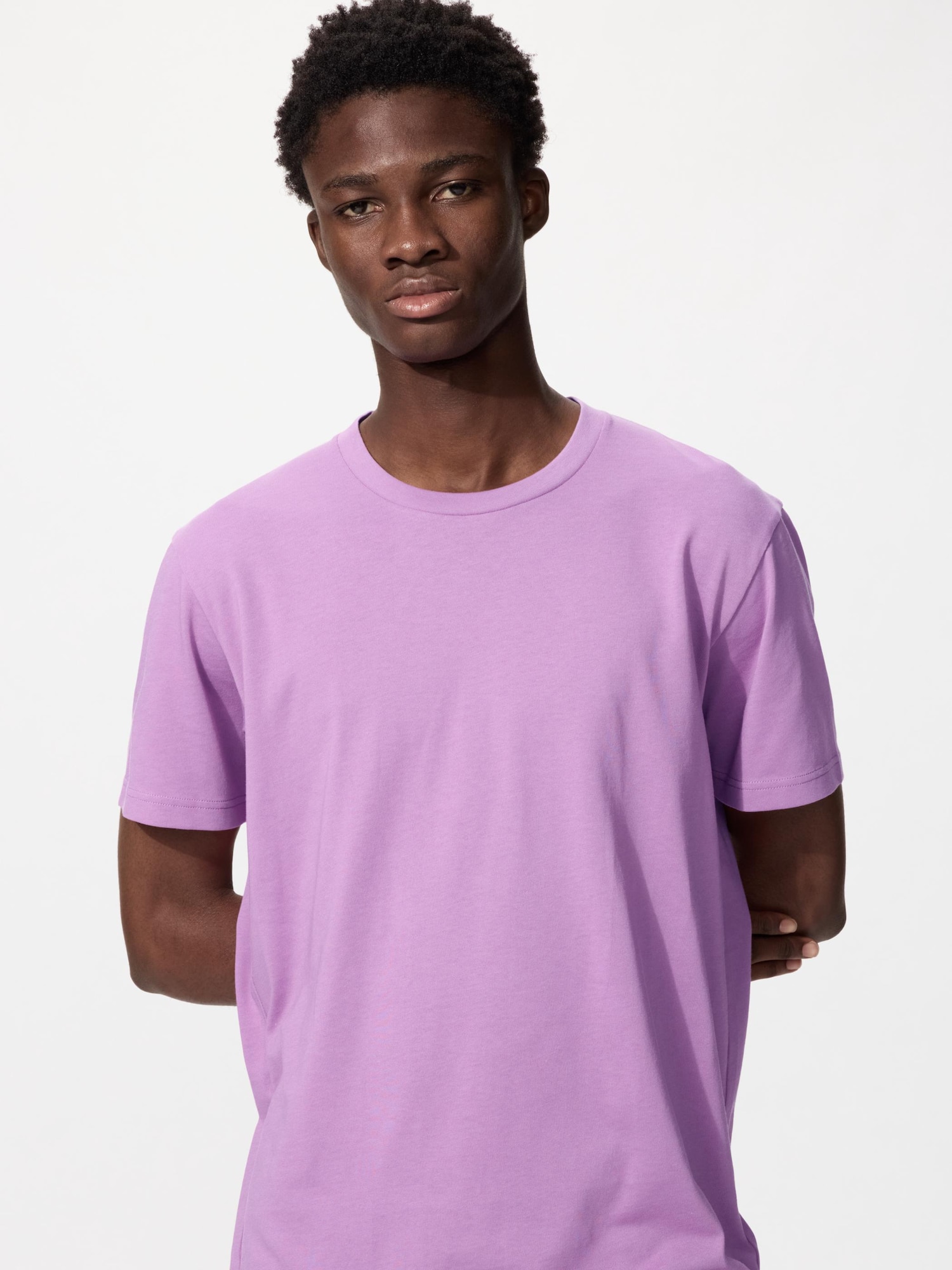 ¥2,990厚手のTシャツのような感じで着用。スウェットやコットンTシャツよりも艶があり高級感があって落ち着いて見えます。暑がりなので冬でも、室内ならこの上にカーディガンを羽織って過ごせます。何ていうの?アンサンブルみたいな…