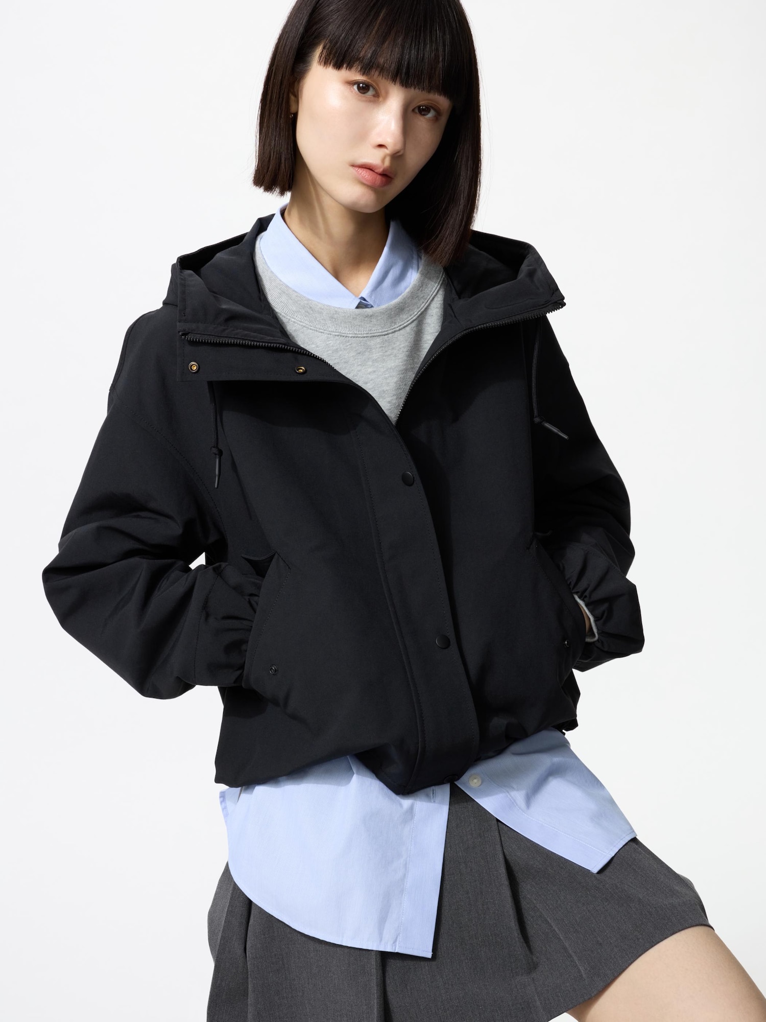 パウダーソフトと着比べましたが、キルトステッチ?がシームレスだからなのか、そのぽこぽこの数が少ないからなのか、太って見えづらかったのでこちらに。あとはフードありか無しで悩みましたが、フードあったほうがもちろん暖かいし、着てみてかわいかったので、パーカの方にしました。前を閉じると首もしっかり包まれる感じがするし、身体にフィットする感じが着ていて気持ちがいい。去年からホワイトのショートダウンが欲しかったので、嬉しいです!