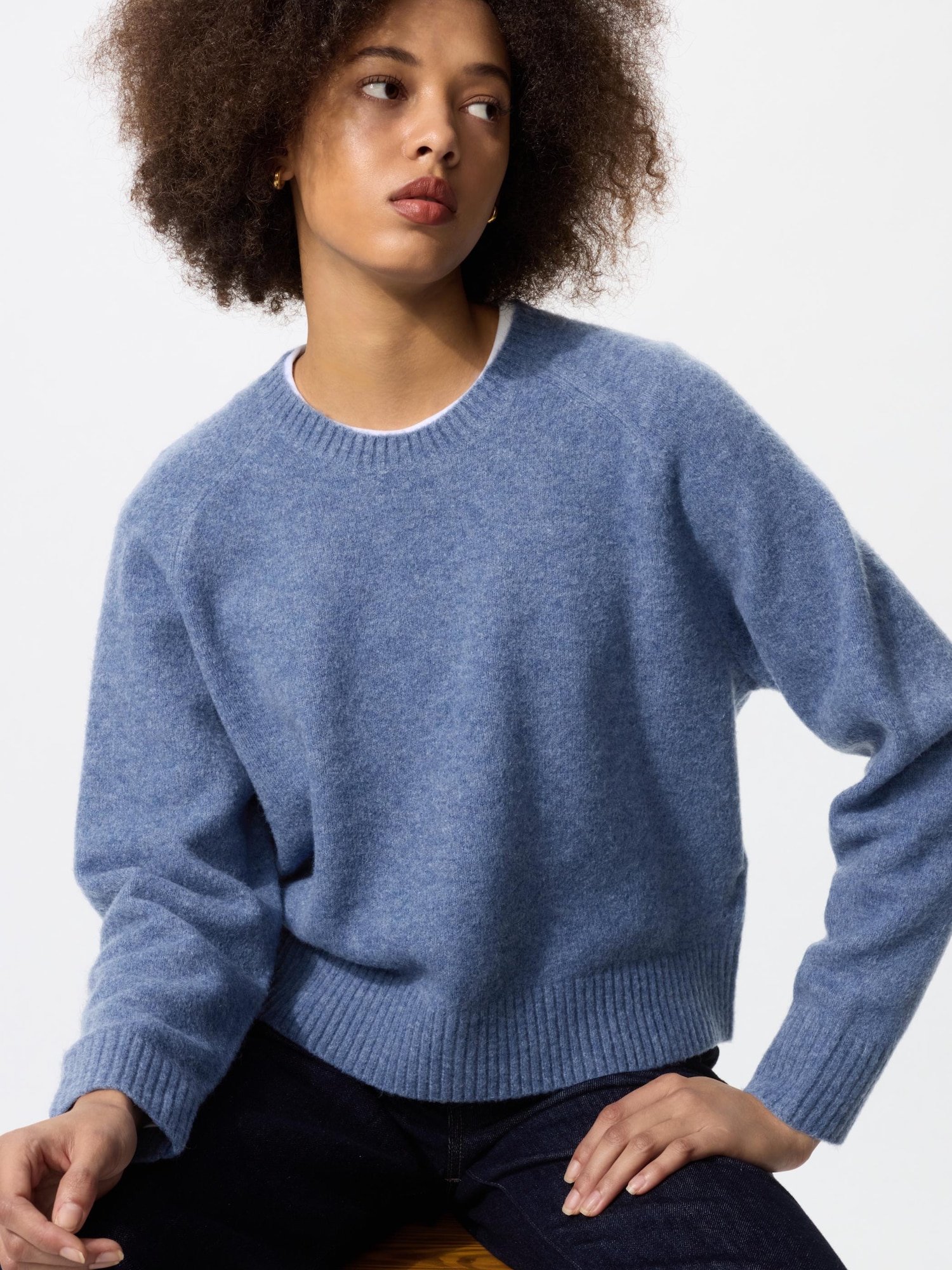 ¥3,990コットンカシミヤクルーネックセーター(長袖)を愛用していたのですが、最近見かけず、同じようにシンプルなこちらを購入しました。適度な厚みと光沢があってきれいに着られて買って良かったです。紺があったらもう1枚欲しかったです。MとLを試着して、パンツに合わせてざっくり着たかったのでLサイズを選びました。コットンカシミヤクルーネックセーター(長袖)も定番としてまた販売していただきたいです。