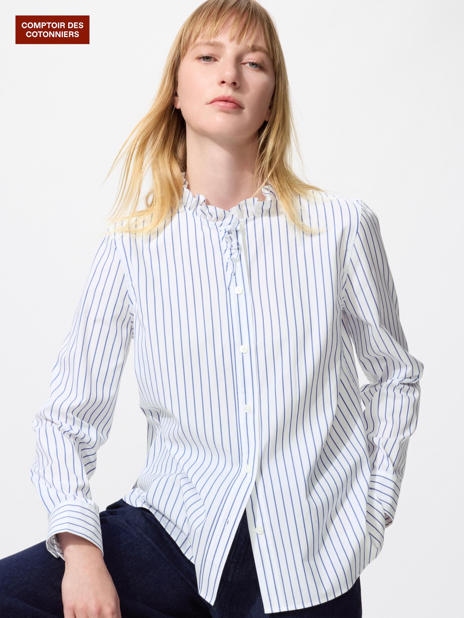 丈の短いワイドやボックス型がトレンドのなかで、この形のシャツはすごく着回ししやすいです。厚手のサマーニットのような素材ですが洗濯機で洗えます。パステル系の色も出して欲しいです。
