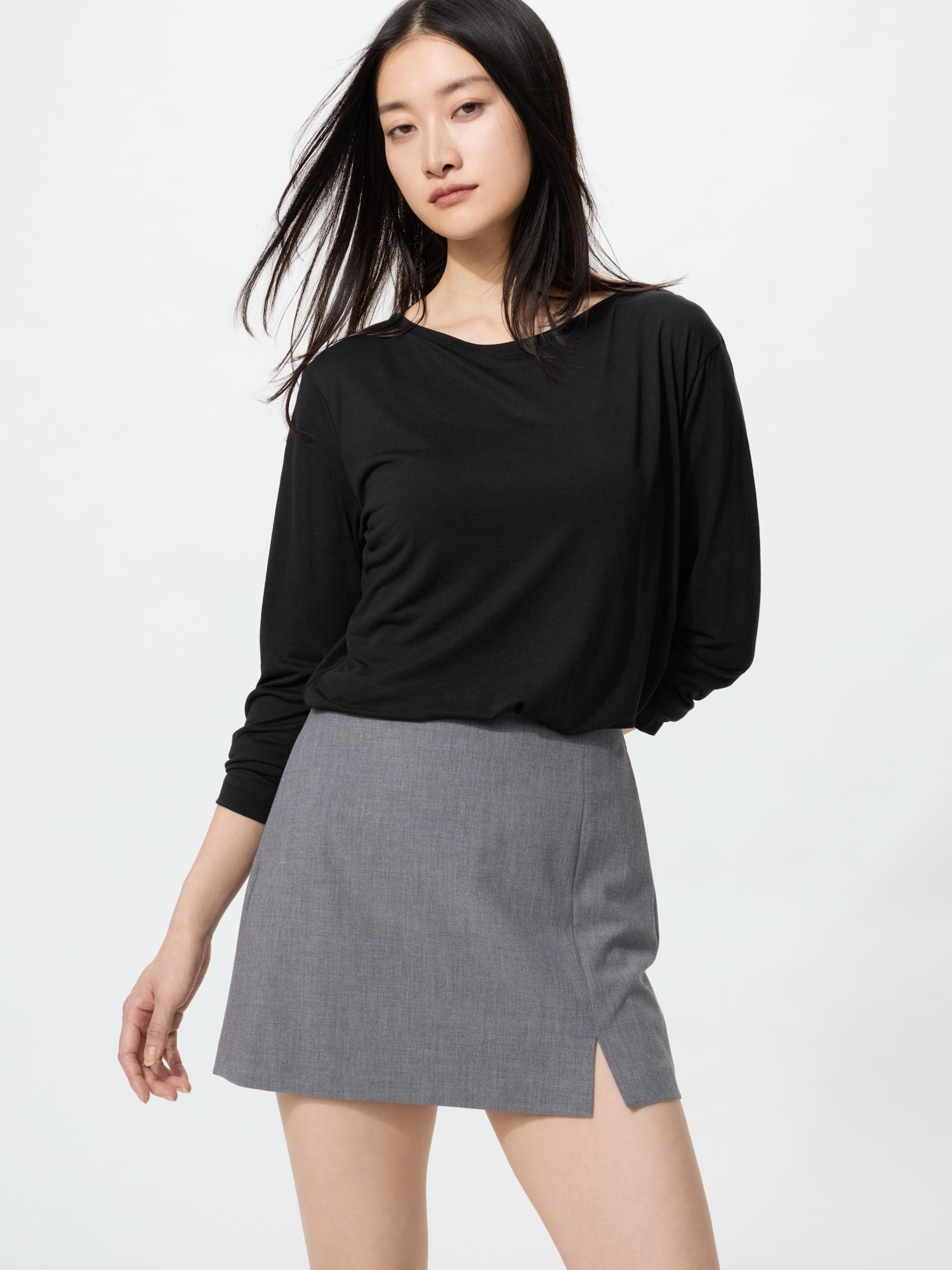 ¥2,990サテンのと迷ってこちらを白黒でイロチ買い。サテンはエレガントすぎたけどこちらは上品カジュアルで落ち感も良い。ニットTでありがちなババくささもない。丈は短めなのでLを購入。当たり前だけど白は透けます。