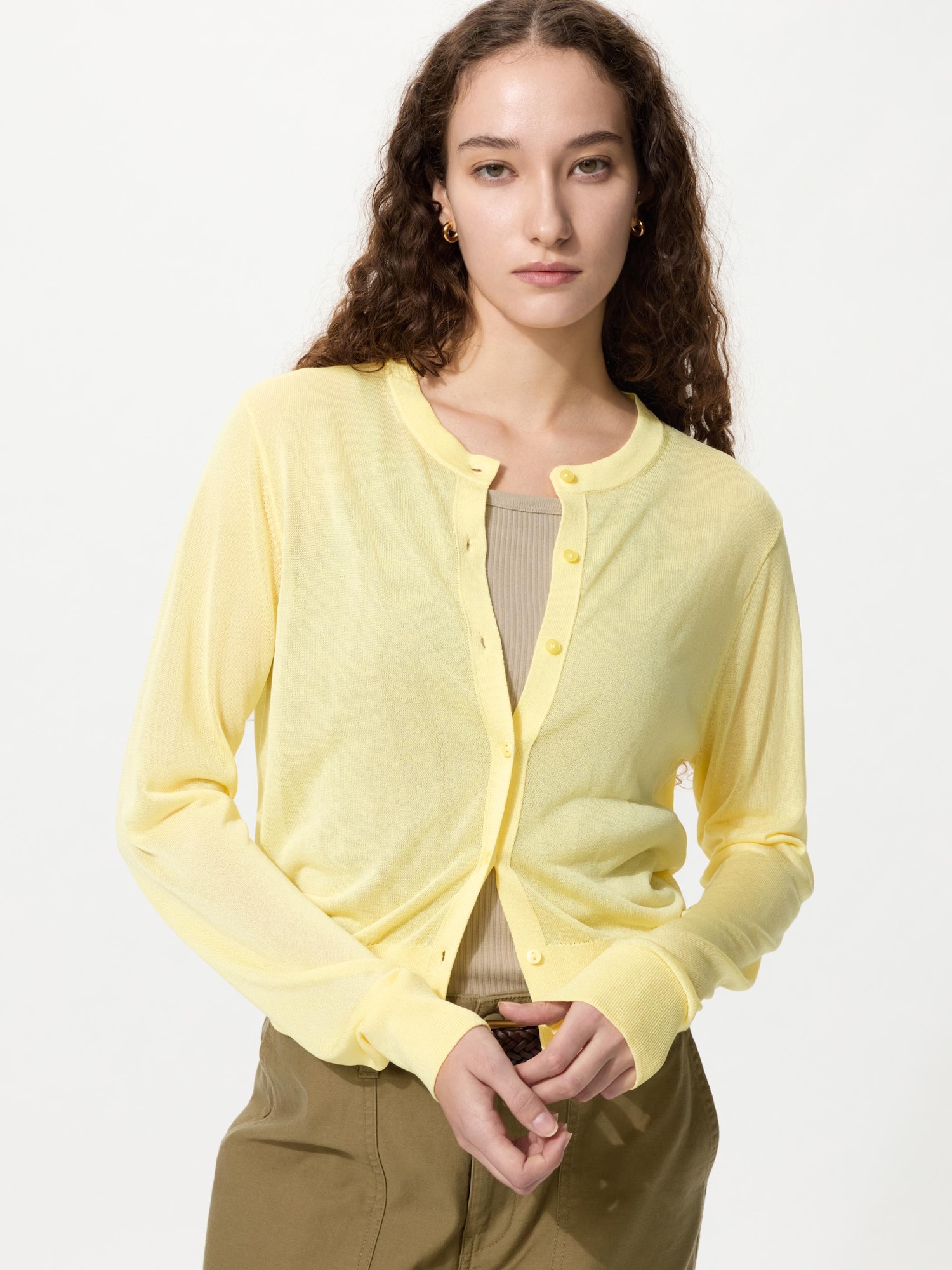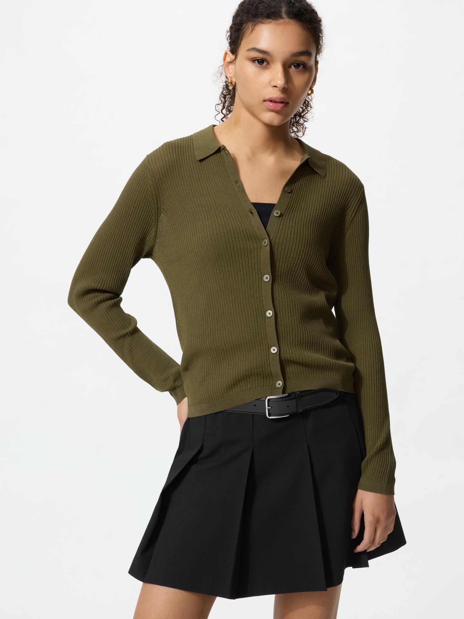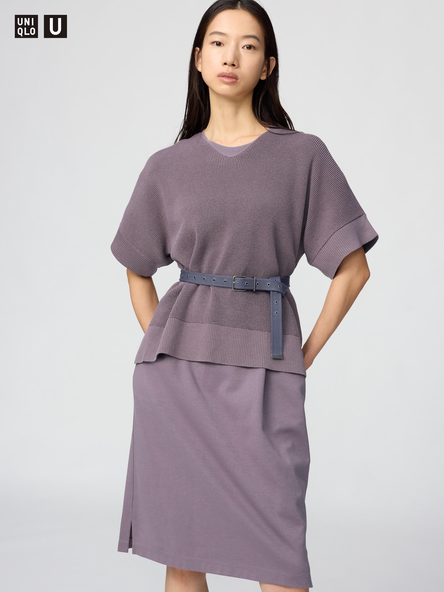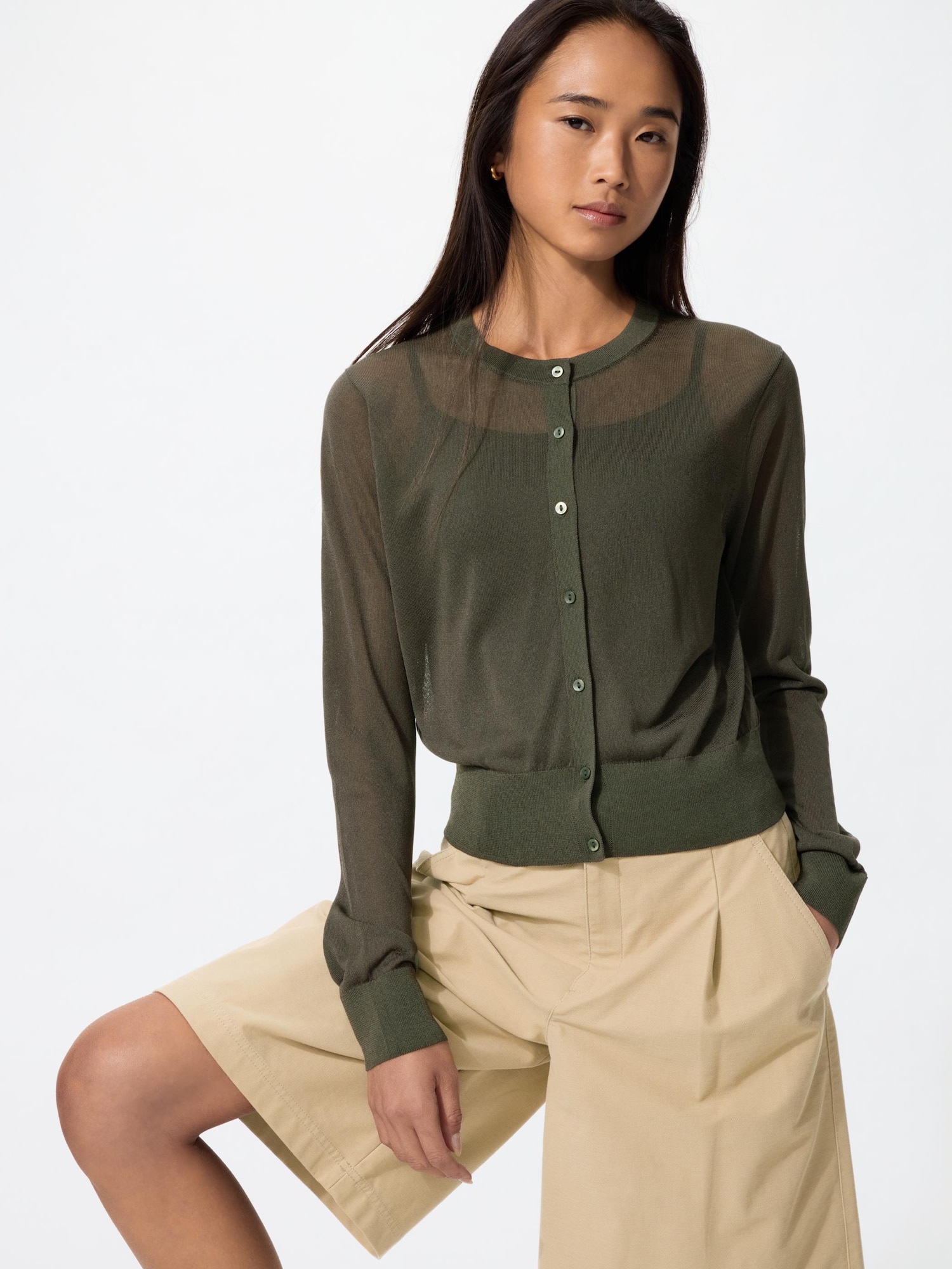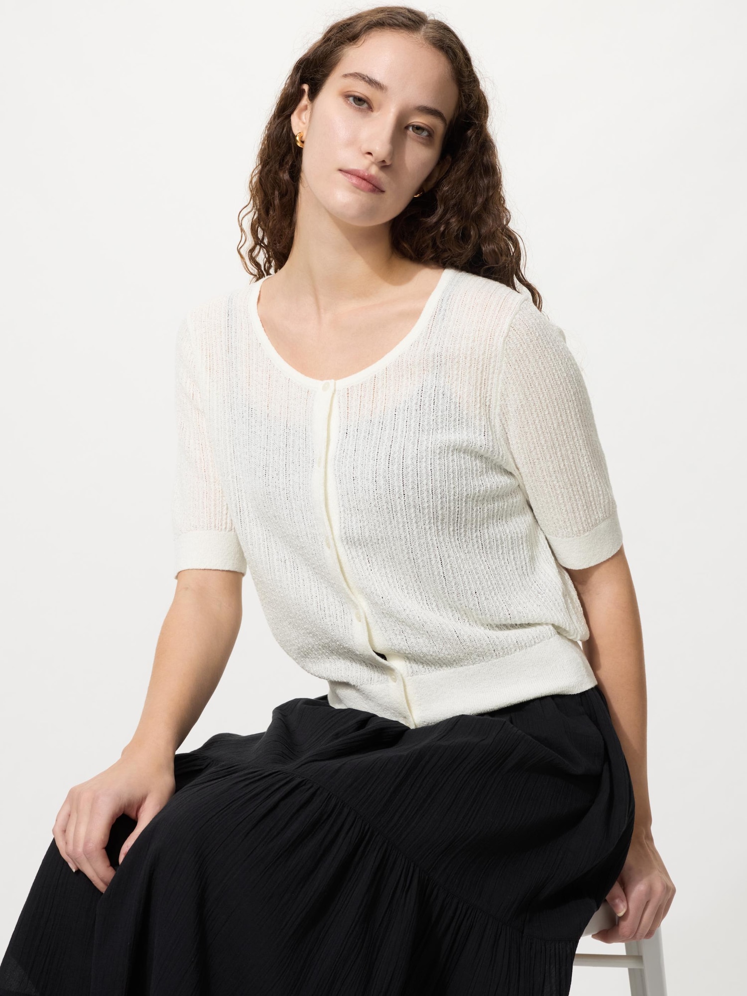 ユニクロには珍しい綺麗めデザインのニット。しかも、長年欲しいと思ってた半袖カーディガン。ぜーったいに欲しい。いつもはお値下げになってから購入ですが、無くなってしまうのが怖くて早々に購入しました。ノースリーブワンピの二の腕隠しにカーディガンは必須。でも長袖だと暑い。なぜ半袖のショート丈のカーディガンって売ってないの?と思い続けてきました。いつもはXXLですが、フィット感細めとあったので3XLを購入しました。まだ試着しただけなので、大きいかどうか今ひとつわからずなのですが、ちょうどよいにしておきました。色違いも購入予定。真夏用にもっと薄手の半袖カーディガンも発売してほしいです。