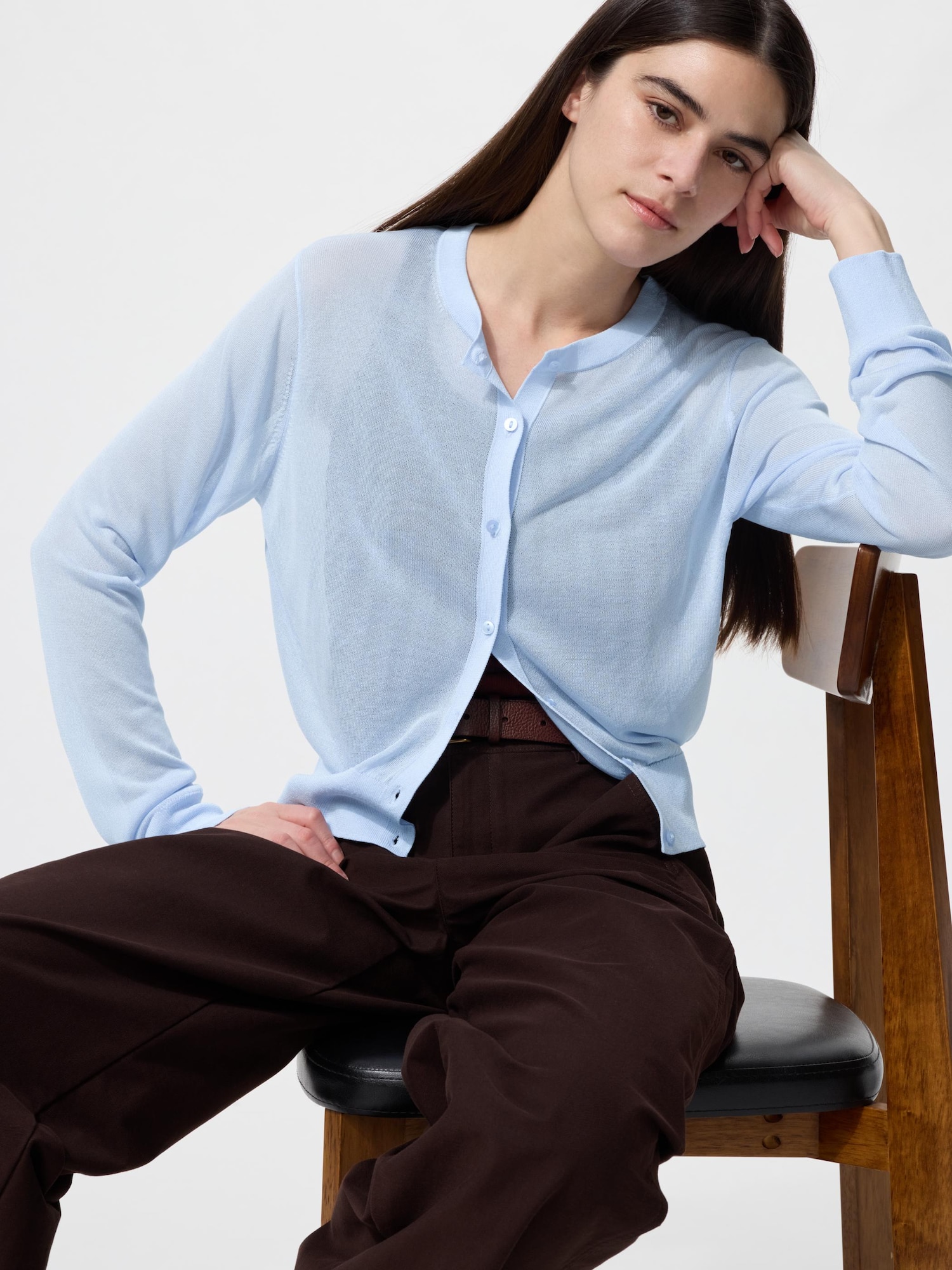 ライトVネックカーディガンを毎年Mサイズで買っていて、去年の着丈が1番気に入ってました。今年はクルーネックでかなり短丈のようだったので店舗でLとXLを試着し、XLの丈と身幅で決めました。カラーも試したいけど、ブラックとホワイトが結局使いやすいです。今年もたくさん着ると思います。