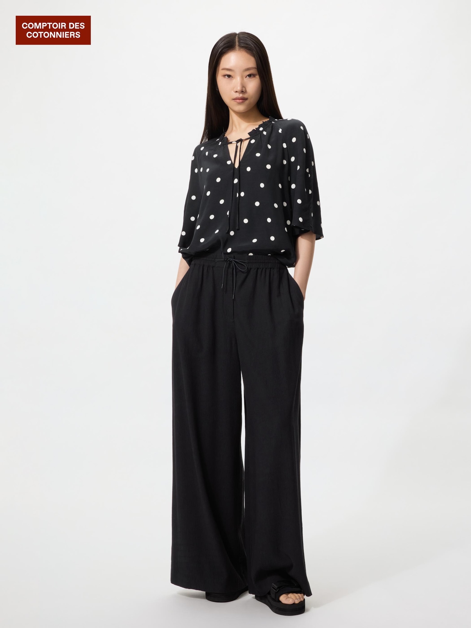 旅行用に白いパンツを探していた所、とても履き心地が良かったので2色買いしてしまいました。少し硬さのあるリネンです。触り心地、着心地いいです。ただ、飼い猫の毛がめちゃくちゃつきます。黒、リネン素材なので仕方ありませんがとにかくすごくつきます。コロコロ必須ですね。サイズ感は、少し大きめです。Sサイズも履けましたが、真夏の暑さを考慮してゆったり履けるMサイズにしました。ちなみにタックパンツはMサイズです。