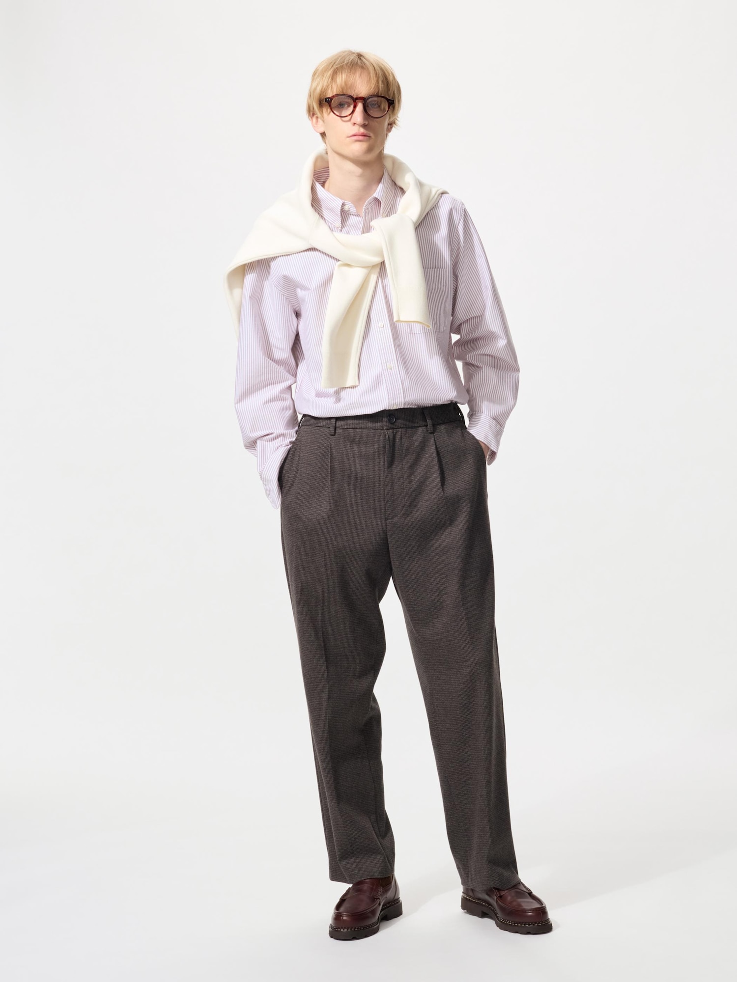 ¥4,990生地感はユニクロUやインラインのチノ程カジュアルではなく、ポリ混のパンツ程ドレス寄りでもない。また薄くも厚くもなくオールシーズン(真夏は無理かも)履けそうで、シルエットもバギーやカーブ程トレンドすぎず、全てがちょうど良いパンツです。しいて言うなら、ウエストに合わせると裾が9部丈になってしまうので、フルレングスで履きたく2サイズアップで購入しました。あまり売れてないみたいですが、一本買っておいた方が良いです。