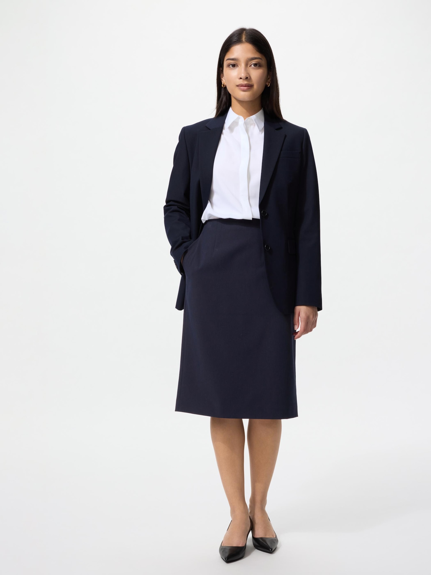 ¥3,990店舗で試着したときは、ミドル丈でもロング丈でも、どちらでも大丈夫と店員さんに言われましたが、帰宅後よくよく考えてロング丈にしました。やはり、膝は隠したいので。身長157でこんな感じなので、高身長のユーザーさん向けにもうワンサイズ長め丈があってもいいかもしれません。紺を買いましたが、定番ですし、色違いの購入を検討中です。