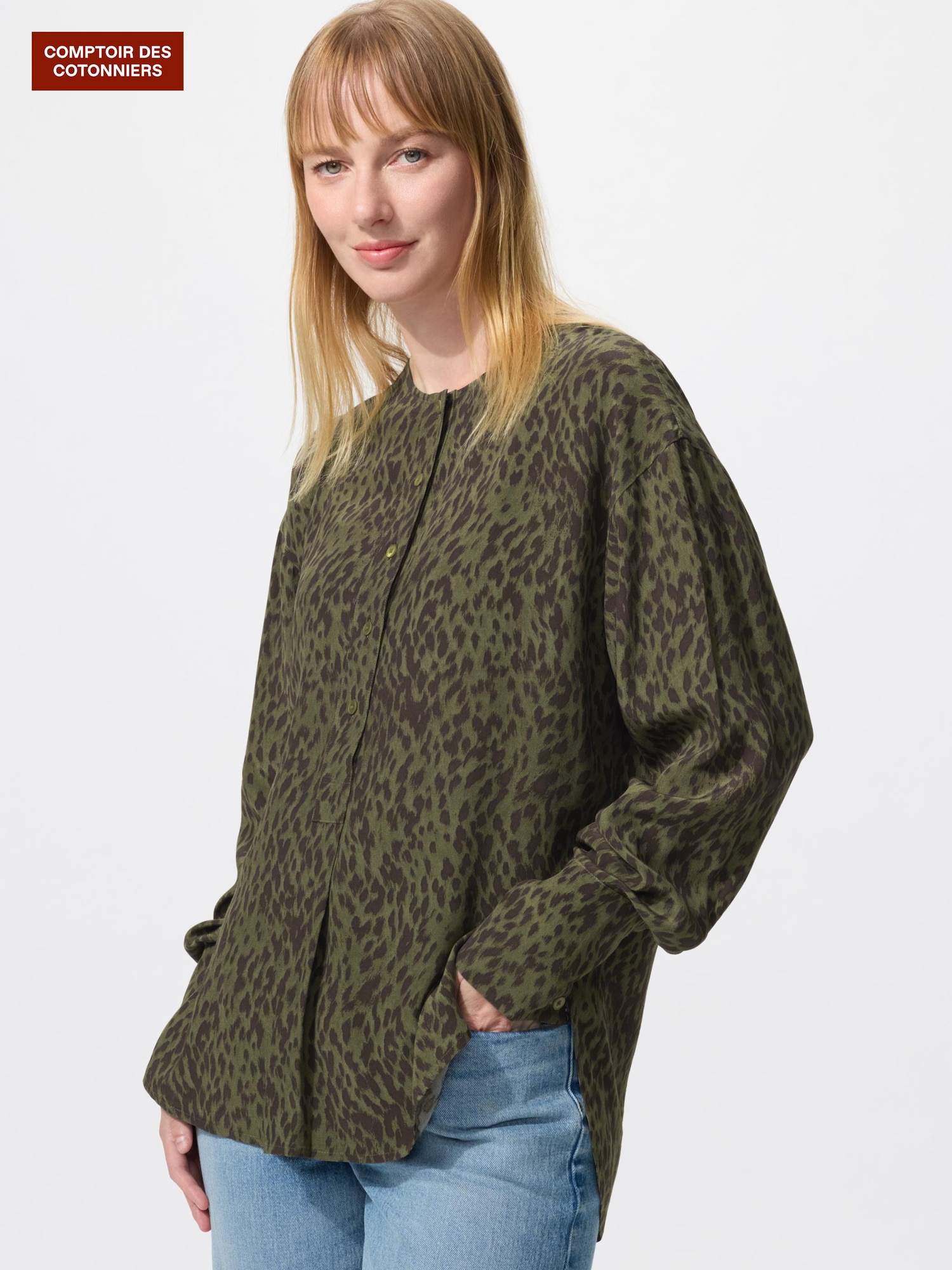 昼食時にドレッシングをこぼしてしまい、急きょ購入しました。一目で色が気に入り即買いしたのですが、若干丈が短いかなぁ…。今年のカットソーは短いのが流行りだとは思いましたが、ブラウスも短めですね。
