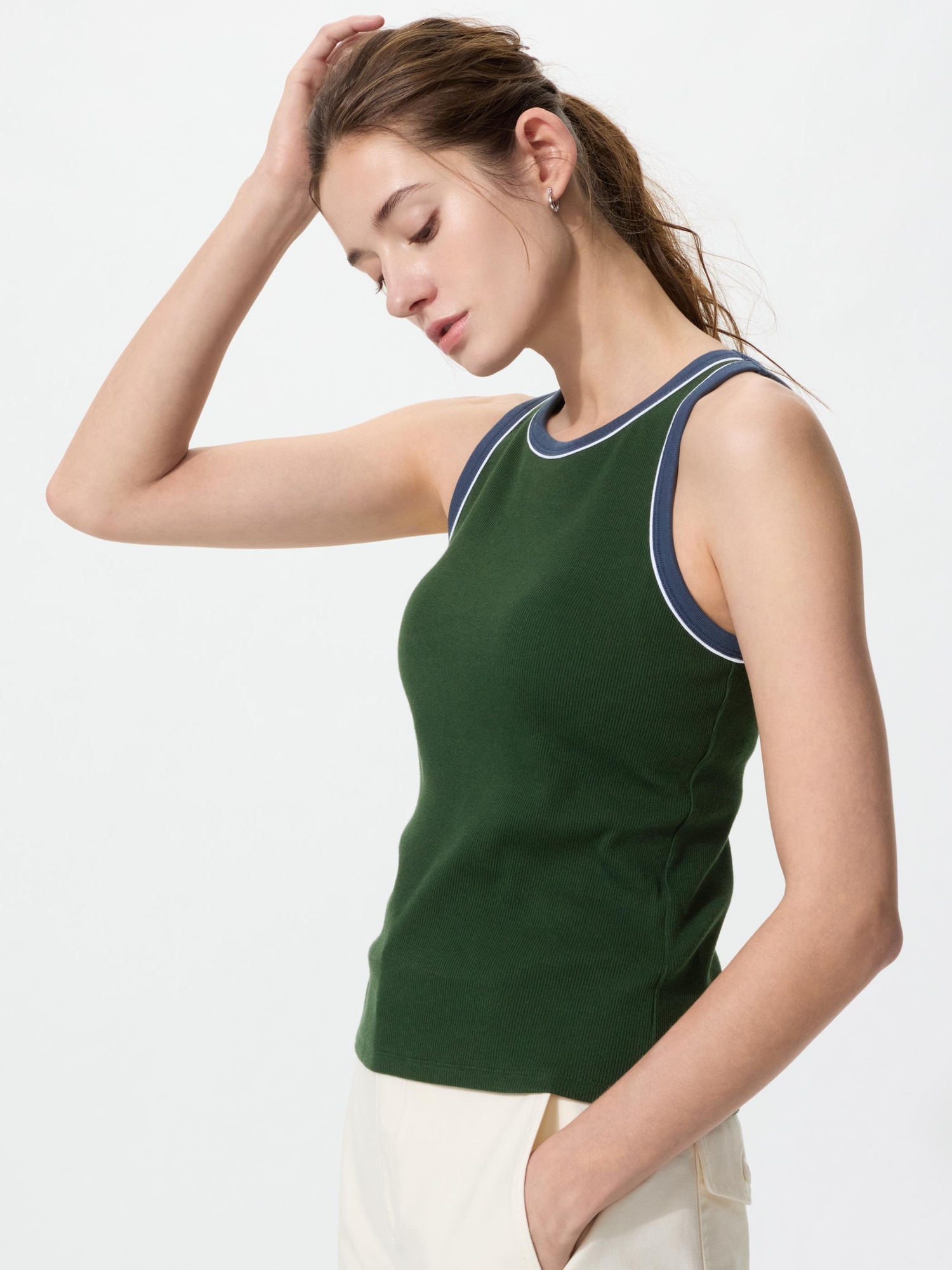 ¥2,490季節を気にせずずっと着ています。フィット感あるしリラックスできるのでブラトップを愛用していますが、このダークグリーンの色味が好みでした。