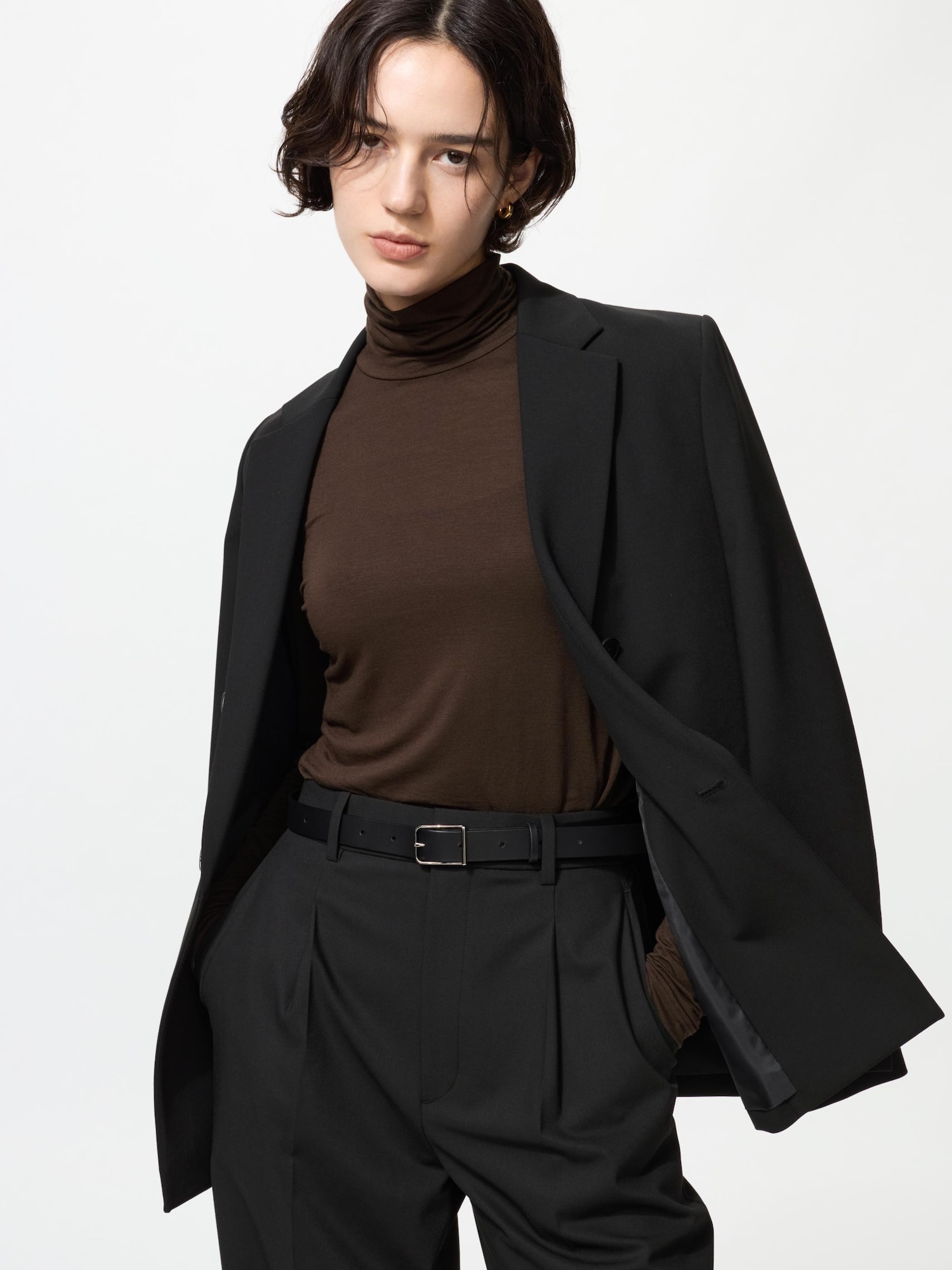 ¥1,290ハイネックは好きで持っていますが、柄ありで色が落ち着いたものは少なくリブ素材なので、肌に密着して暖かいです。今は1枚で、寒くなったらインナーに着たいと思います。