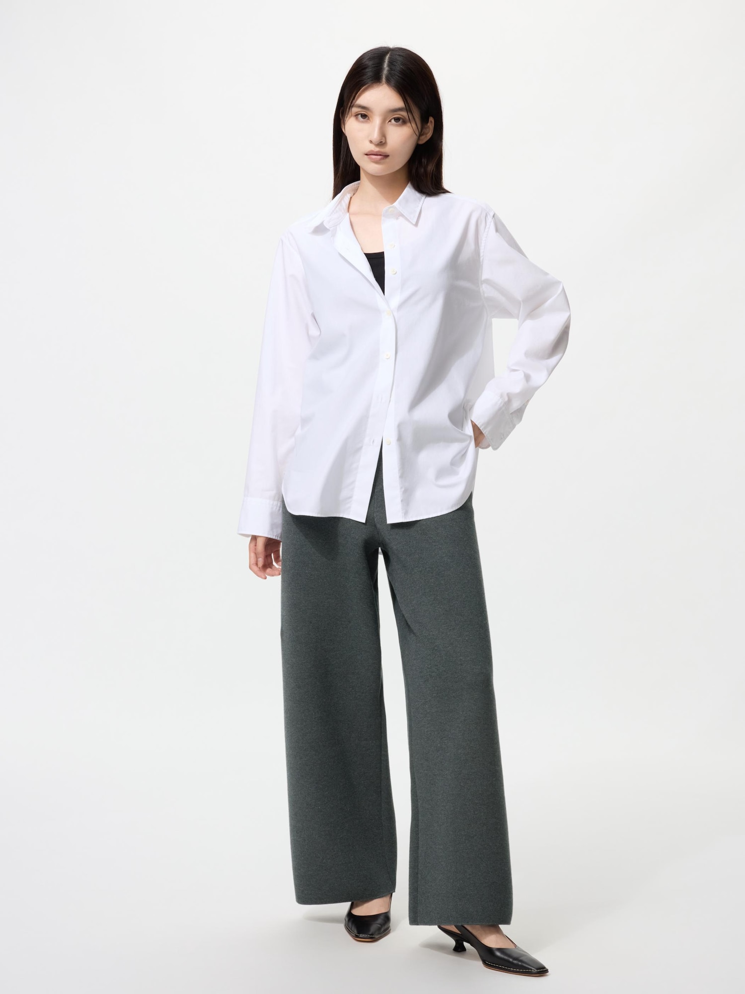 ヨーロッパモデルで気になって手に取りました。普段ユニクロではLを購入することが多いですが、こちらはMでちょうどでした。そして丈が長いです。普段丈長めを選ばれる方や高身長の方に良さそうです。私は踵スレスレのレングスになりました。洗濯して伸びないといいなと思っています。履き心地はとても良く、おしゃれに見えます。後ろにポケットがありますがワンポイント的な感じで実用的ではないです。グレーはセットアップできるトップスがなかったのが少し残念でした。