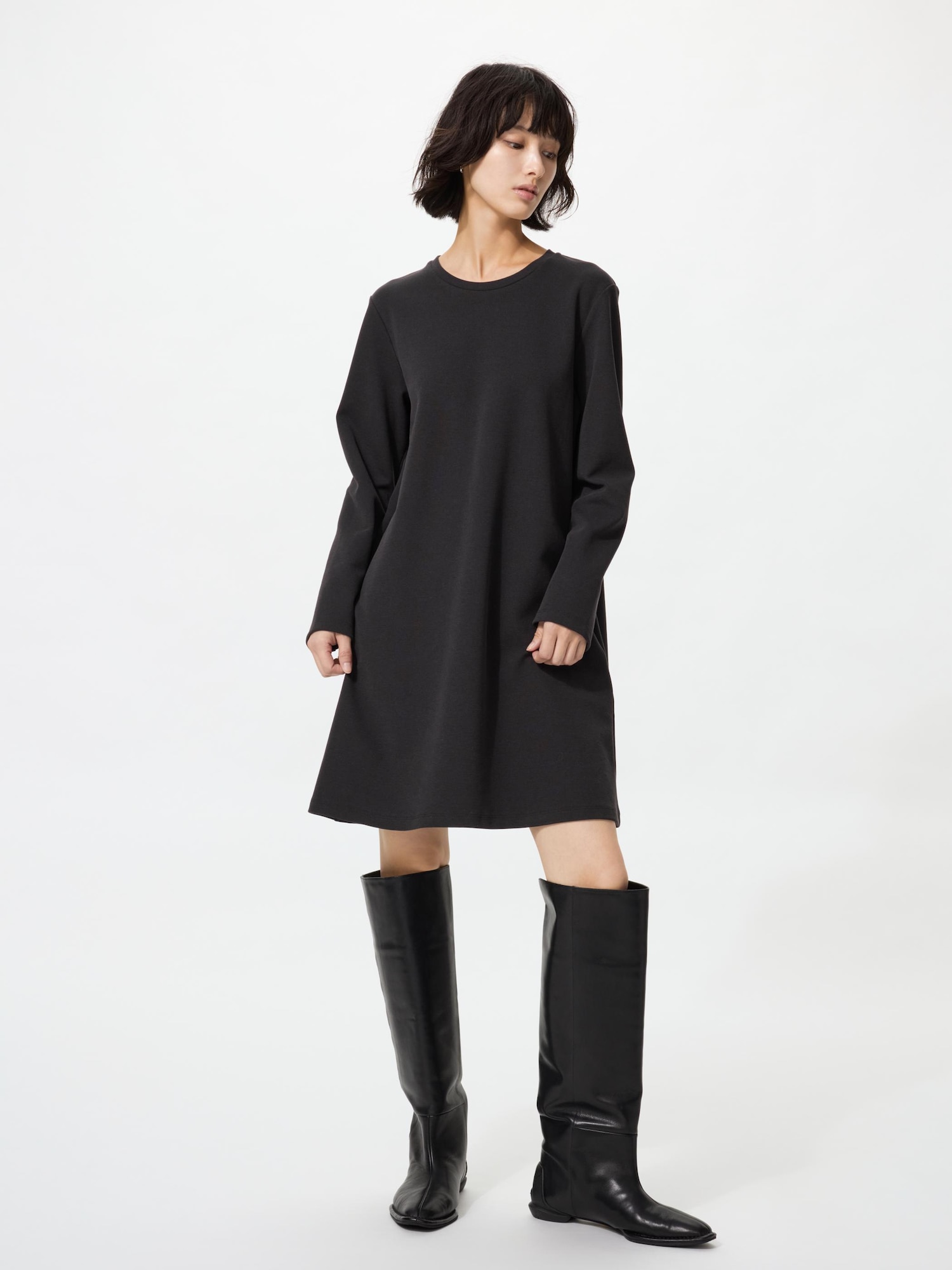 ¥4,990ユニクロCのワンピースは好きで毎シーズン購入しています。今回もこちらのワンピースのブラックとネイビーを購入しました。薄めのポンチのような素材です。伸縮性があって着心地がいいです。いつもXLでオススメサイズもXLでしたが、身体のラインをひろうかとワンサイズ大きめにしました。身体にそう綺麗なラインなので、サイズアップして良かったと思います。