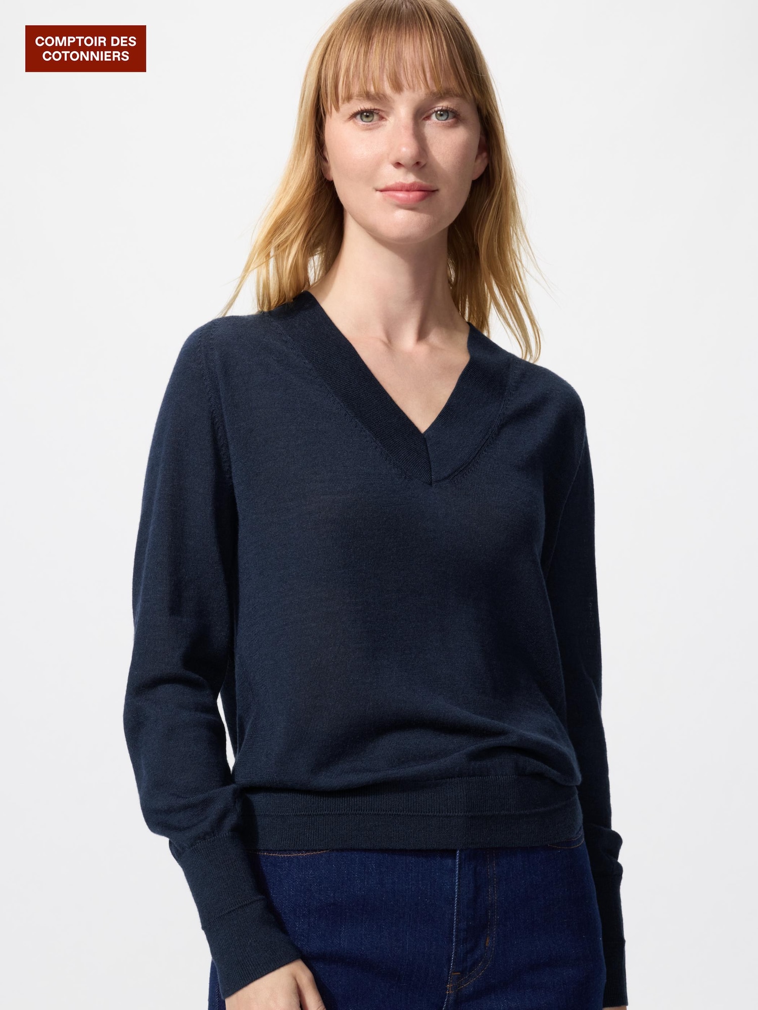 ¥7,990紺と水色購入。同じコトニエで、去年の夏に半袖で出たメリノシルクセーターと同素材でした。紺でも透けてるくらい薄くて、テロンと柔らかな肌ざわりです。Vネックわりと深めなので、ヒートテックのUネックTだとちょっと見えちゃう感じです。肩幅42cm胸85Dで、身幅袖幅だいぶ余裕ありですが、生地の薄さにより体に沿う感じにテロンとなるので着膨れはしないです。袖は親指の付け根まで来て、長めでとても嬉しいです(いつも袖丈足らないので。。)。身丈はわりと長めで腰骨下お尻半分くらいまでありました。水色も写真通り、きれいな明るい色で素敵です。(169cm62kg肩幅胸大きめ、腕長め)