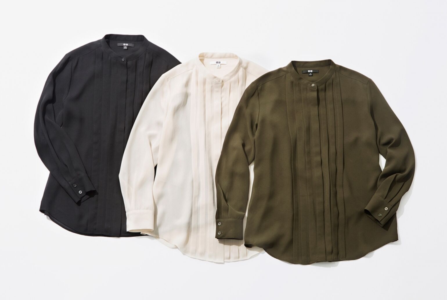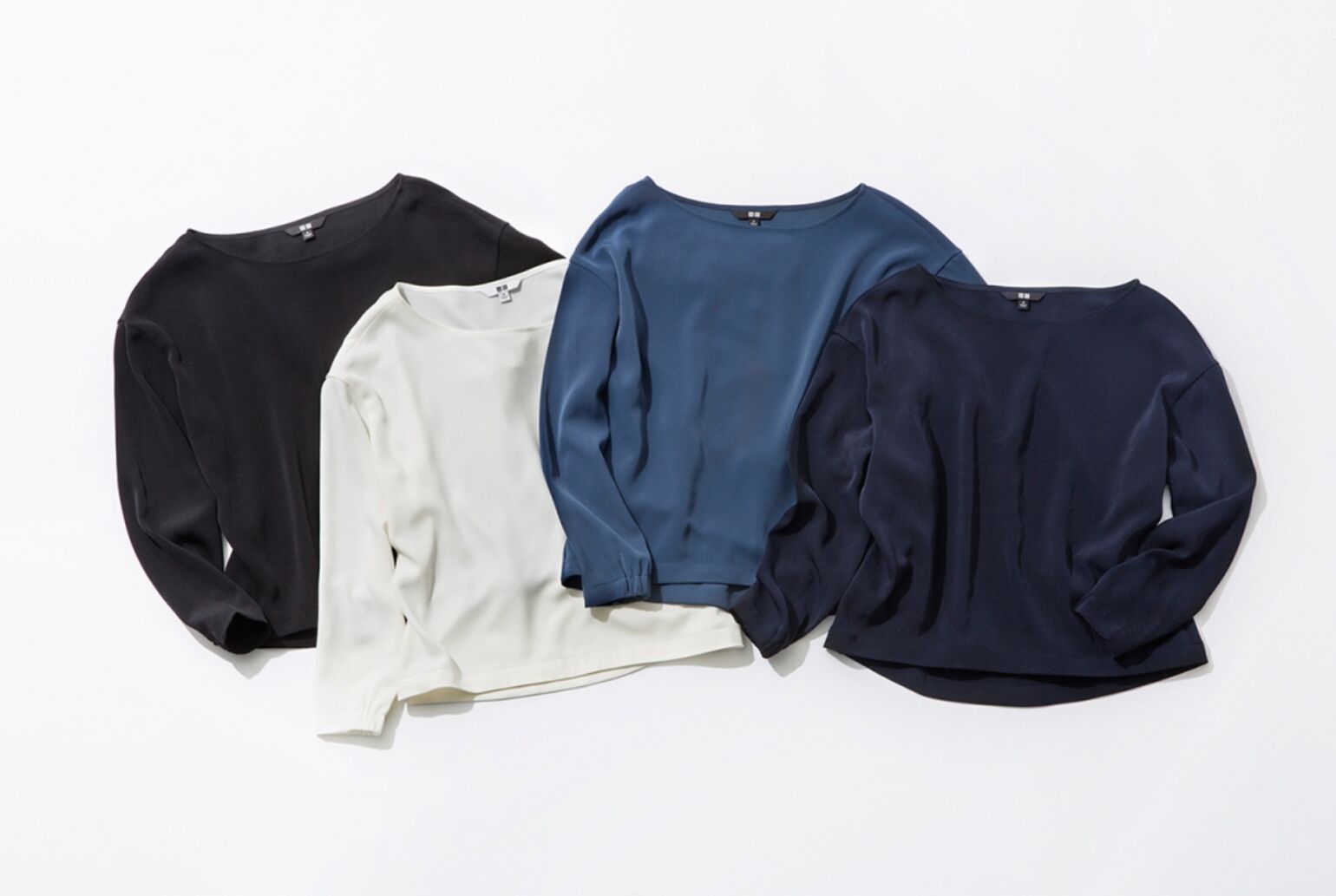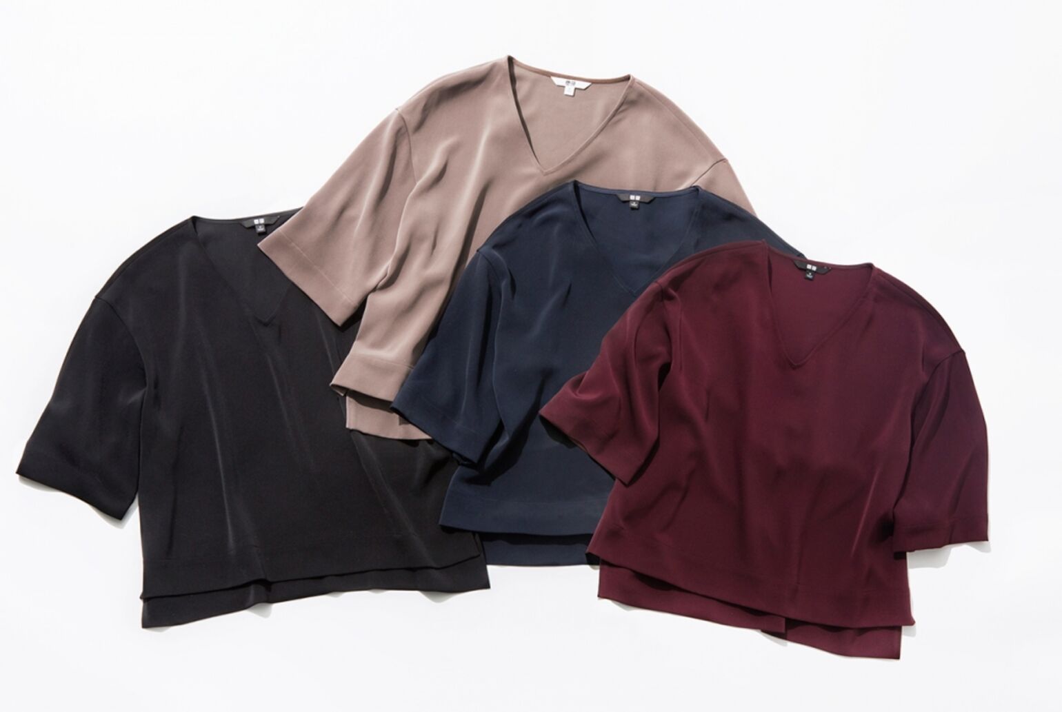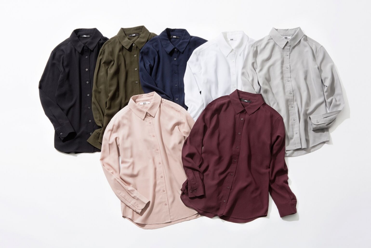とろみ感のあるレーヨン素材が、ボディを柔らかく華奢に見せて、ファンが急増中のレーヨンエアリーブラウス。ユニクロの超人気アイテムが、秋のトレンドカラーに彩られて進化しました。深みのあるボルドーやオリーブ、ネイビーなどエレガントな色と、とろみ素材が絶妙にマッチし、一枚着るだけでしっとりとした女性らしさを醸し出します。カジュアルでもフォーマルでも、どんなコーデも作れる長袖のシャツブラウスから、シンプルで万能なTブラウス、カーディガンとも相性がいい上品なスタンドカラーブラウスなど、デザインもさまざま。