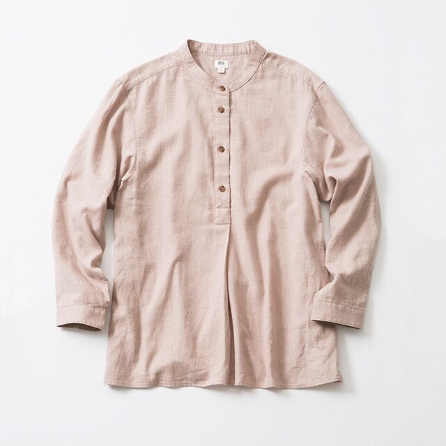 今年のユニクロのフランネルシャツは、こっくりとしたヘザーカラーが特徴的。羽織りやインナーとしても使えることを計算した色なので、あわせるものを選びません。さらに触った瞬間「気持ちいい」と感じる起毛した生地で、大人っぽいリッチな雰囲気が漂います。より品の良さを狙うなら、フランネルスタンドカラーシャツを。クリーンな印象でワンランク上の着こなしを叶えてくれます。