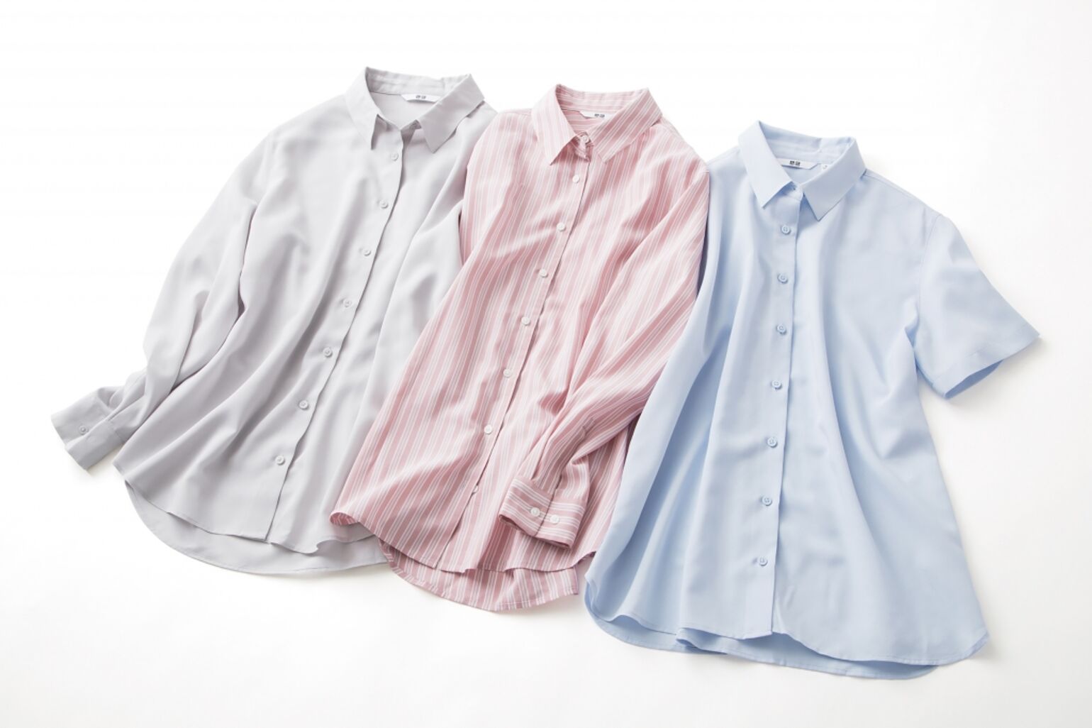 オフィスでも、普段着でも、デートでも!着こなし次第で、どんなシーンでも活躍するレーヨンエアリーブラウス。小さめ襟&最小限のステッチで、どんなコーディネートもクールに仕上げてくれます。今年は白などの定番カラーに加えて、春らしい新色も登場。ふんわり軽やかな風合いで、上品なフェミニンさが演出できます。