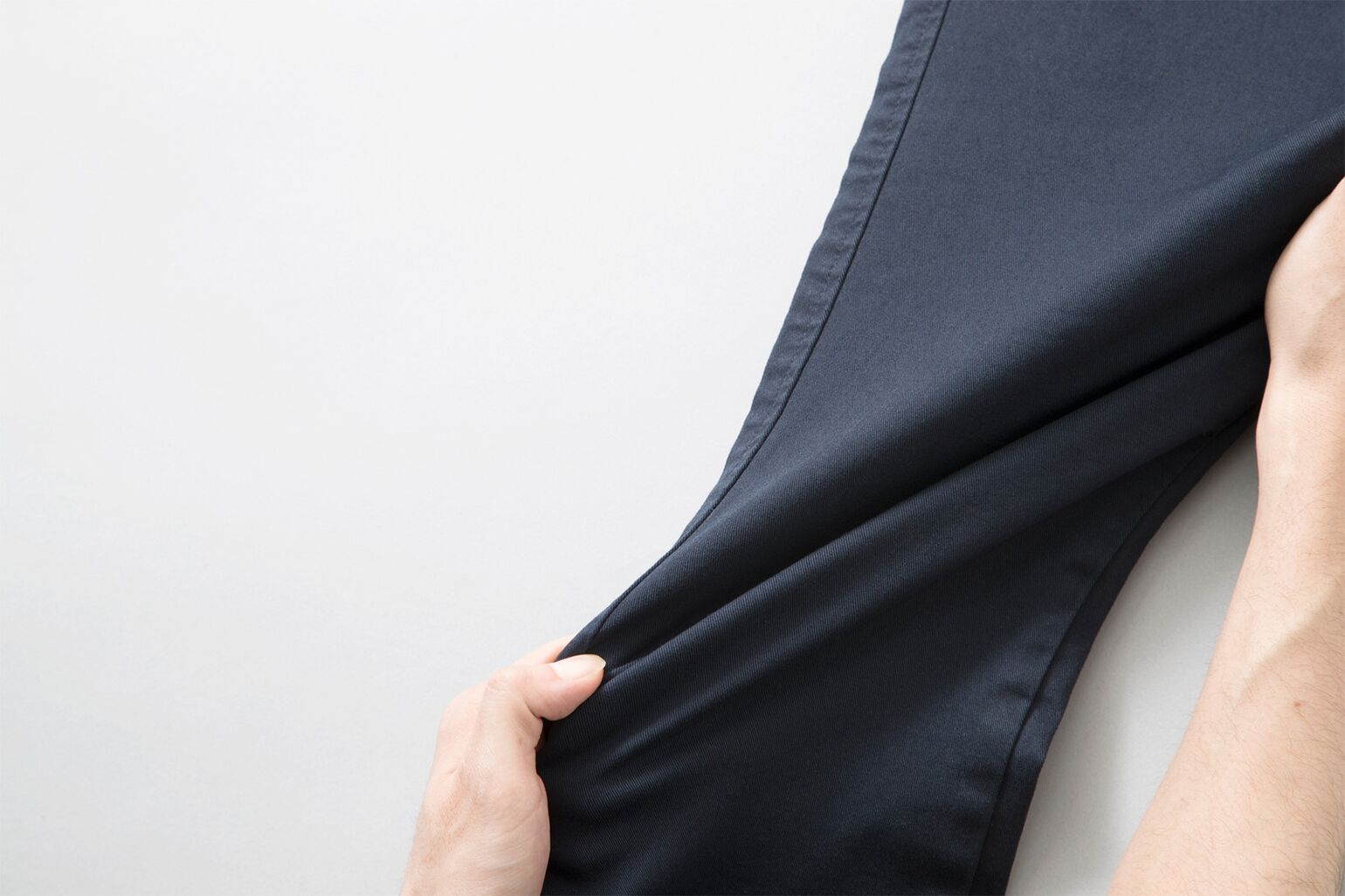 ほどよく光沢のある双糸を使用し、高密度ツイルに織り上げたオーセンティックなチノ。独特のハリコシは残しながら、肌に当たる横糸を細くすることでソフトな風合いに仕上げました。特殊な洗いによるヴィンテージライクな表情も魅力です。