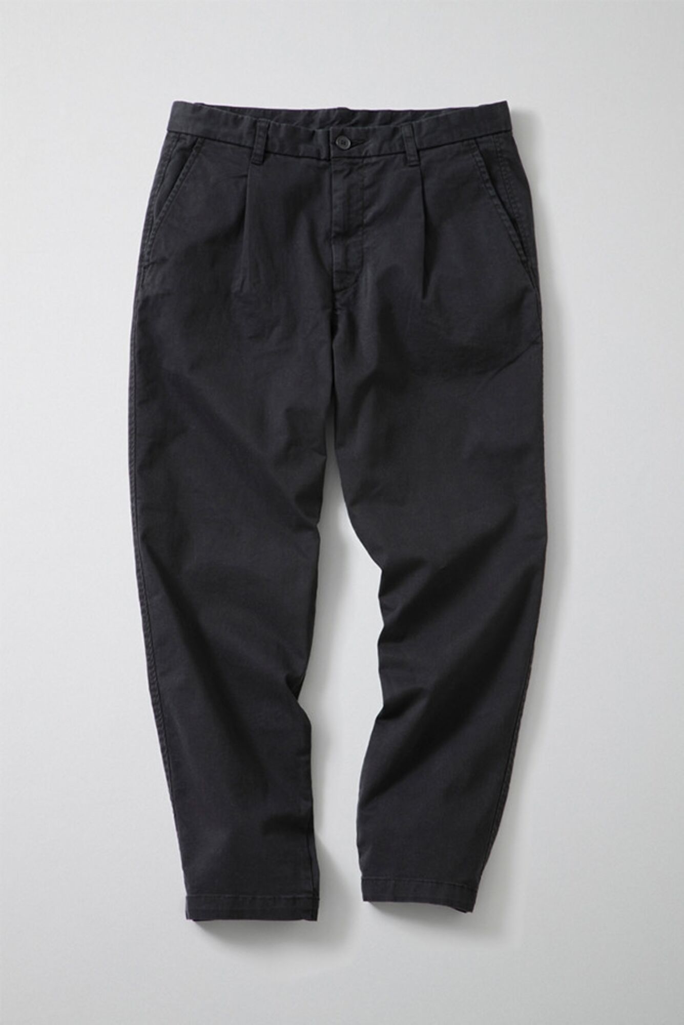 高密度で織られたコットンストレッチチノを素材に採用。柔軟な穿き心地はもちろんのこと、微起毛加工を施すことで、ルーズになりがちなワイドフィットも滑らかで上質なタッチに。ほどよくテーパードしたシルエット、シックなワンタック仕様がコーディネートにクリーンなアクセントを与えてくれます。