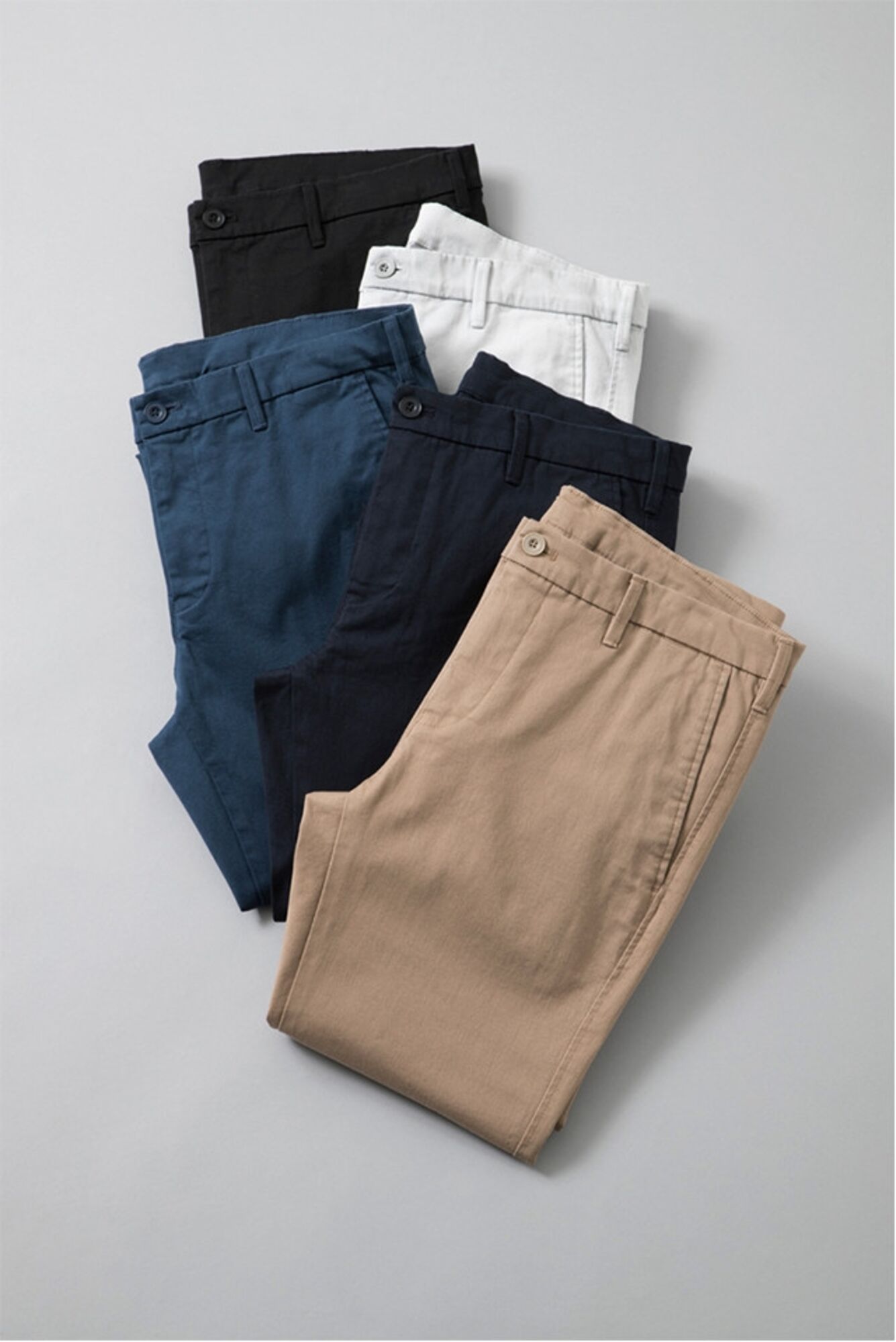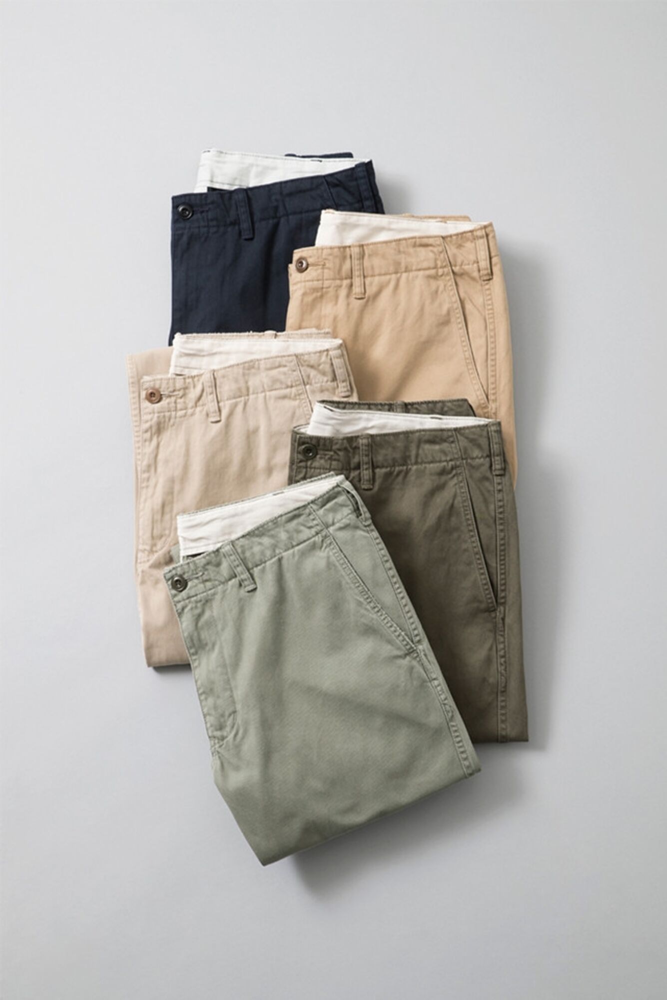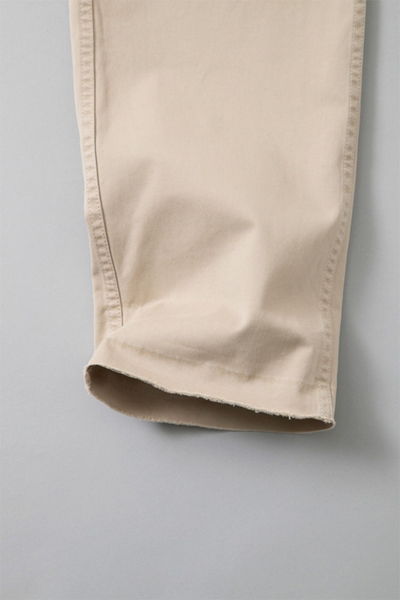 太いダブルステッチや天然ナットボタン、フロントのコインポケット、裾のアタリなど。ヴィンテージのチノパンからインスパイアされた本格的なディテールに注目。トラウザーのようなフィットパターンを採用することで、オーセンティックなシルエットを現代的に洗練しました。