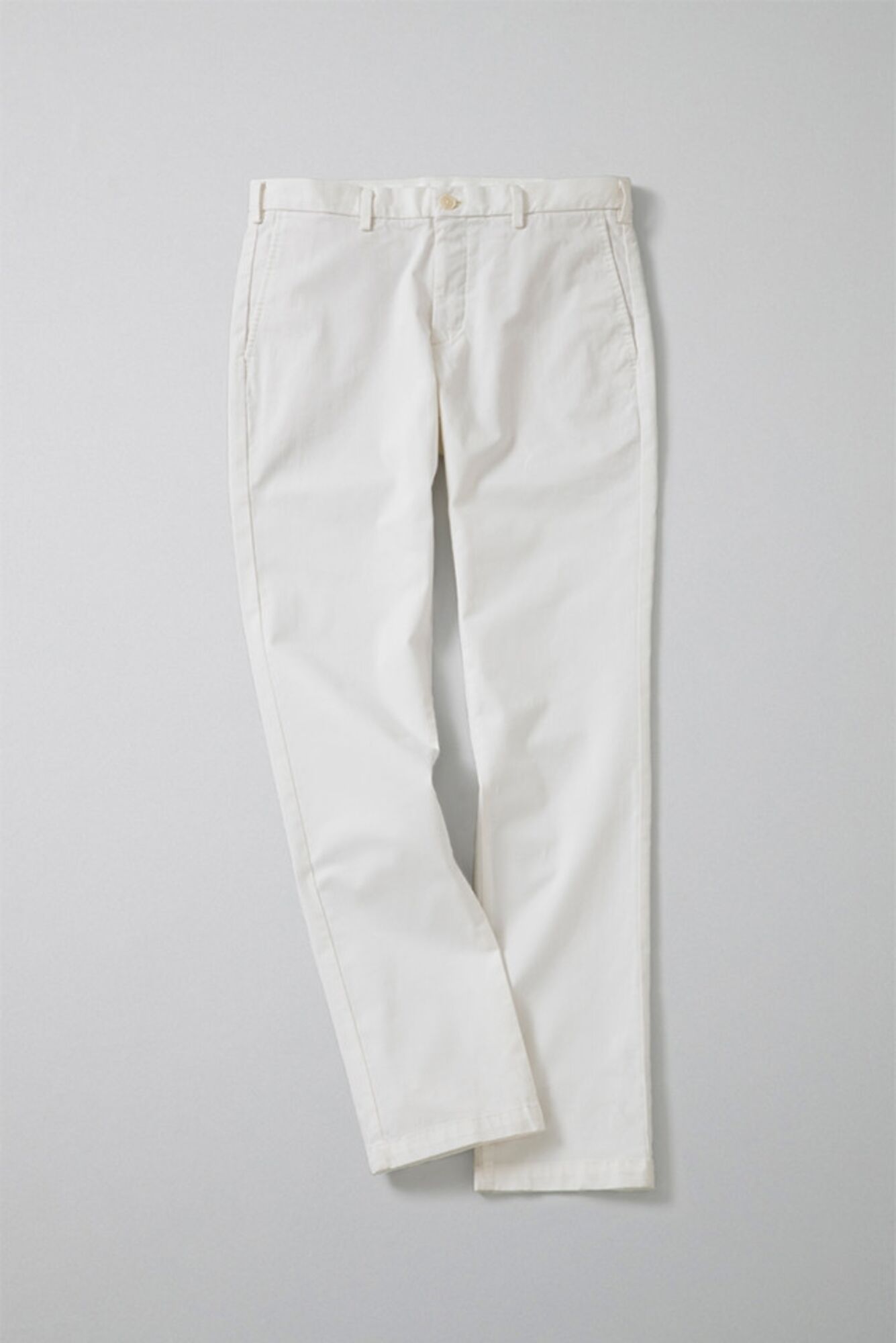 オンにもオフにも使える極めてシンプルなデザインがなにより魅力の万能チノパン。トラウザーに近いパターンを採用した綺麗なストレートラインが、ほどよく上品な雰囲気を演出します。シャツインでもクリーンなシルエットに。