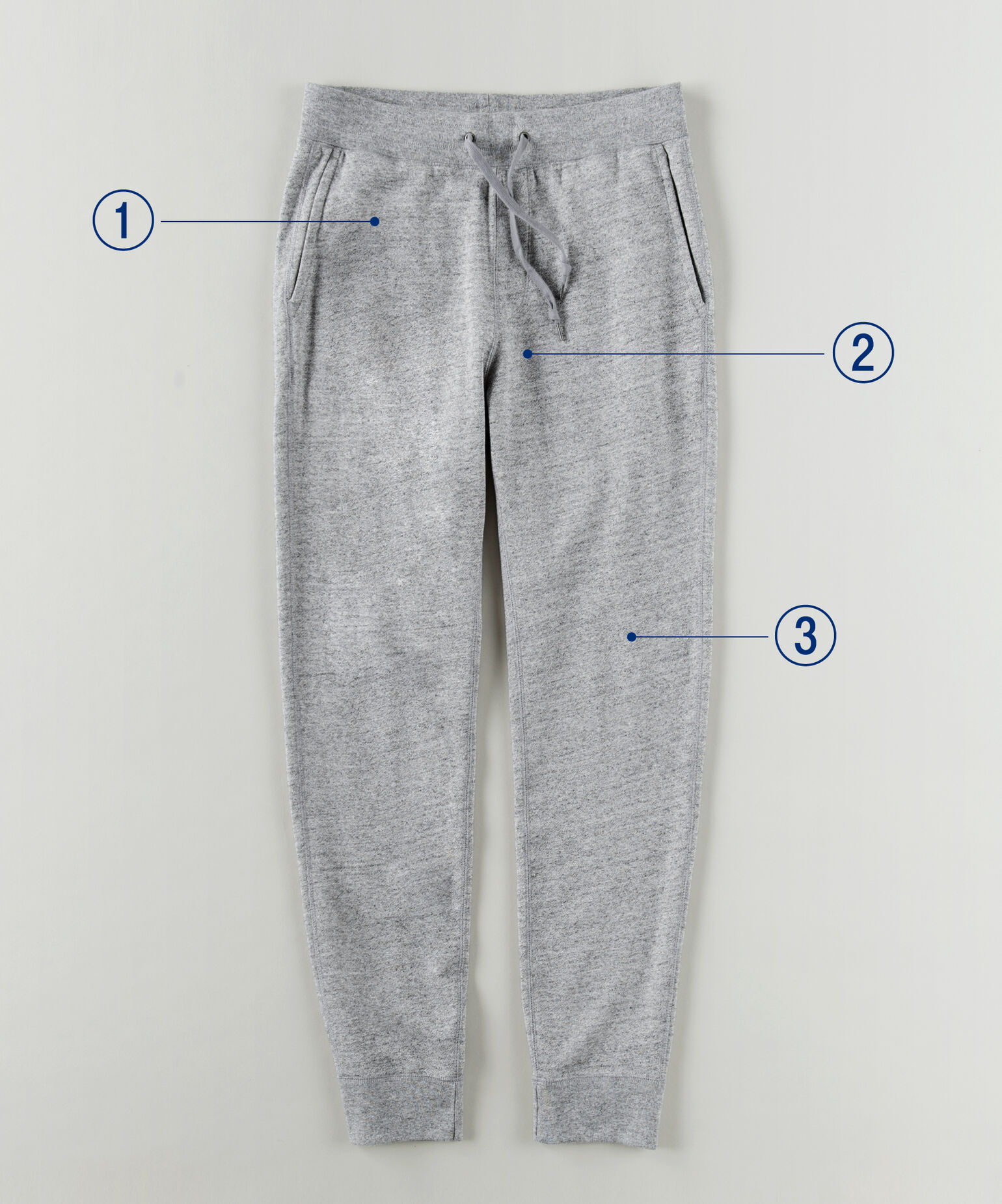 コットンを主役にポリエステルをブレンドし、密度を高めて編み立てられた新たな生地を採用。しっかりとハリ・コシがあり、スウェットパンツで懸念される型崩れや膝抜けもしにくく。